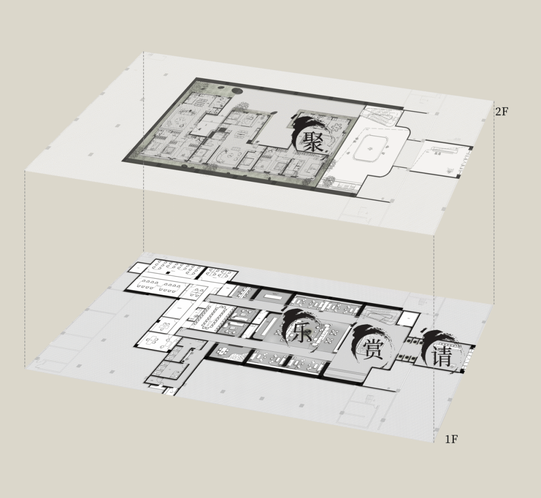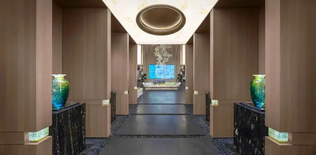在空间节奏的设计上,灵感汲取自宋代传世名作《千里江山图》中的“高远、深远、平远”多重构图手法,通过层次分明的空间布局与流畅的动线设计,营造出富有强烈韵律感的艺术空间。同时,设计巧妙融入宋代文人雅士聚会中的礼仪精髓——请、赏、乐、聚,将传统礼仪文化与现代空间美学相结合,赋予空间以深厚的文化内涵与仪式感。