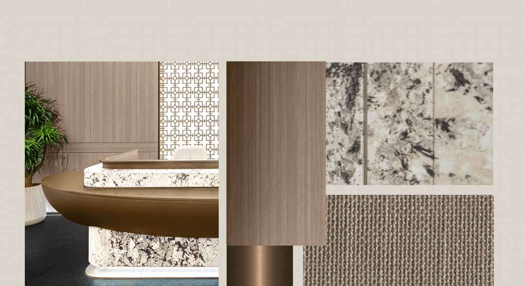 主要材料|木纹岩板、潘多拉石材、黑域玫瑰石材