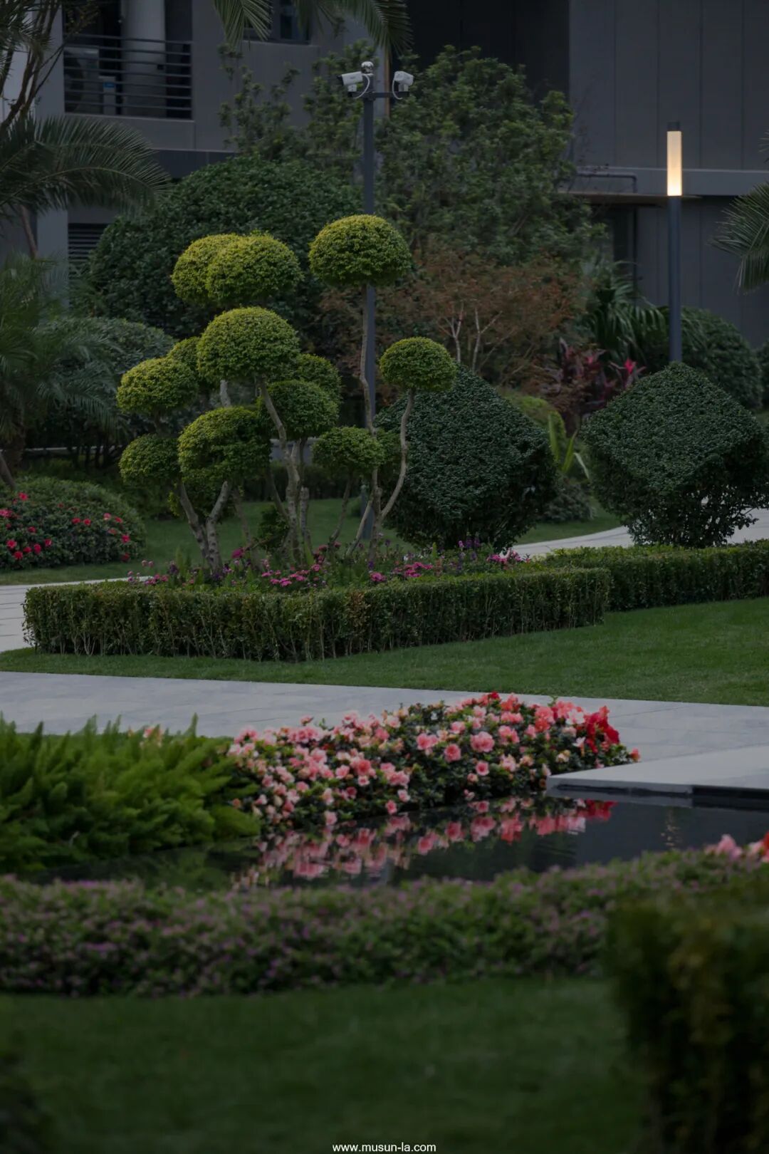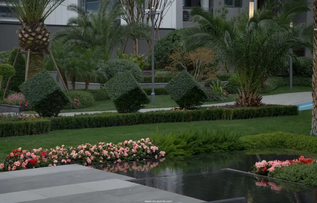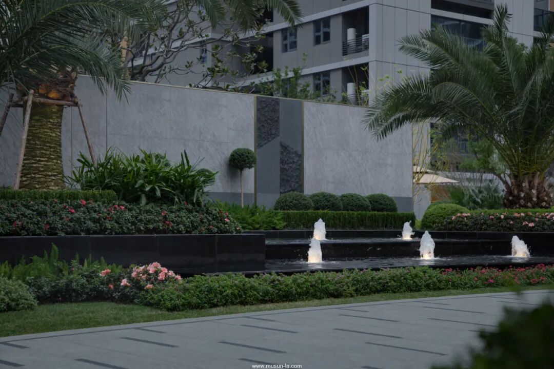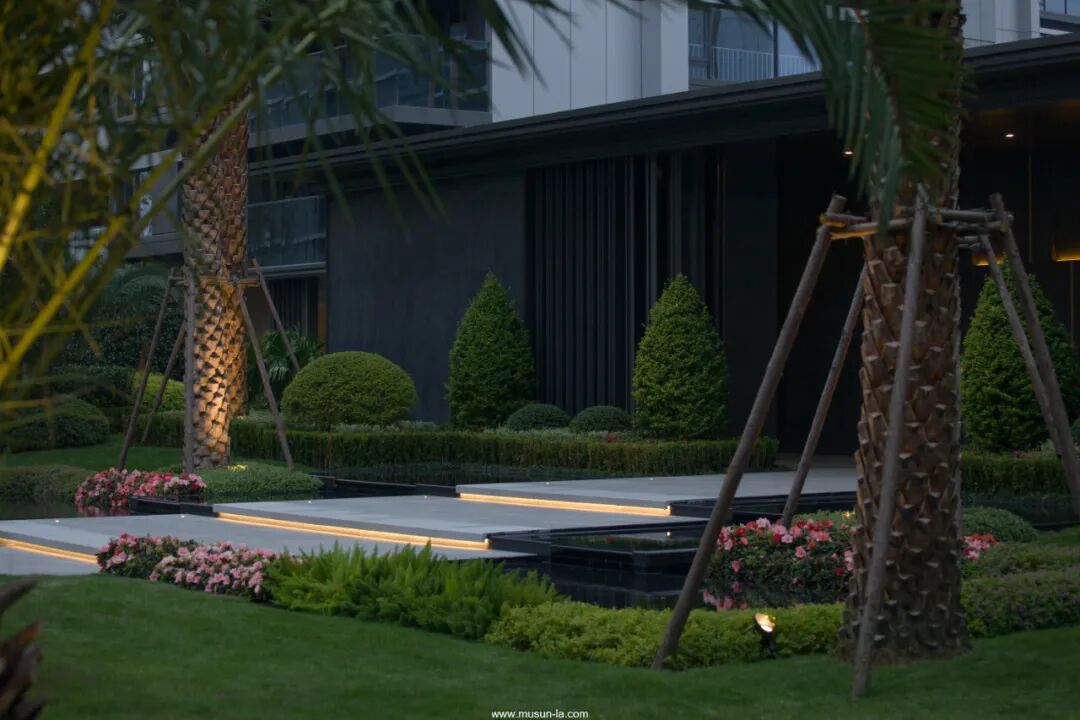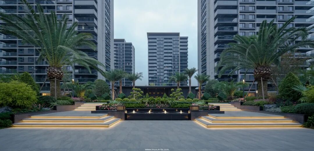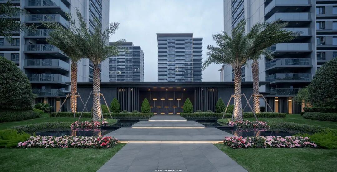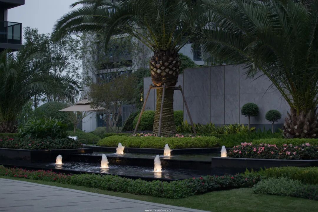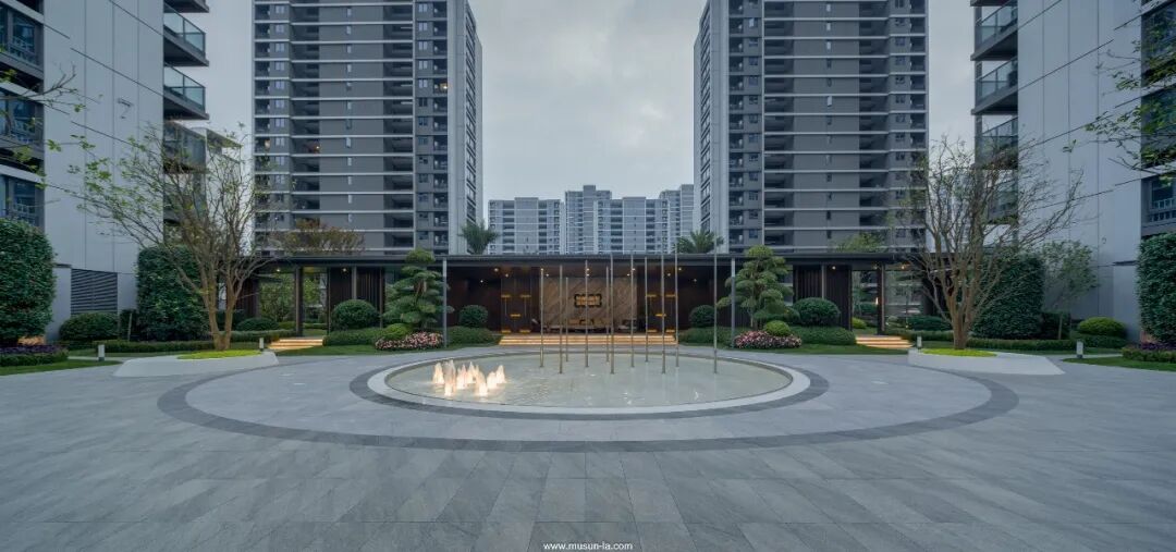 叠水与涌泉,海枣树与花境,景墙与光影,构建多元空间场景,悠然归心之所 致敬立体主义大师布拉克的几何解构艺术, 通过直线切割、 块面叠合等设计语言, 在二维平面营造三维空间的视觉韵律。 迎宾水庭倒映天光云影,脚步随涟漪慢下来 镜面水庭、叠瀑、构成水的双重奏, 演绎"无水不园"的东方意境。 空间由旱喷广场为中心点向外扩散,转换为特色碎石铺装、矩形立体特色树池,整体空间给人向心聚 镜面水景将建筑纳入画框, 完成从喧嚣到宁静的过渡; 以黄金比例重组,形成极具张力的现代构图, 让建筑与自然对话。 下沉式草坪如柔软星毯,星座灯饰悄然点亮开放的社交草坪旁设置高低错落的座凳,以开放的氛围暗示场地功能。 自然中的客厅,精神情感的共鸣,自然中的疗愈空间 形成这一片独属于女主人的花园空间 以“神奇动物”为灵感构筑立体乐园,穿梭其间,故事悄然生长,奇想不设边界 自然不仅仅是一种风景,对孩子们来说,是一位重要的老师 春知学堂中多种多样的植物 让孩子们可以亲近自然,观察自然,感受自然 专业运动系统融入静谧夜色,每一次呼吸皆是与身心的和谐对话 这不是简单的住宅景观,而是一场关于生活方式的革命。 在滨江兴耀·湖悦岚湾, 我们重新定义"家"的维度——它可以是孩子的冒险乐园, 是女主人的下午茶花园,是长者的冥想庭院, 更是每个人心中的度假圣地。 让设计消失,让生活浮现。 ———项目信息——— 项目名称:滨江兴耀·湖悦岚湾 业主单位:兴耀房产、滨江地产 完成时间:2024.11 占地面积:38155㎡ 项目地点:杭州 景观设计:MUSUN木杉景观 方案团队:JON0,邹余浩,黎红,吴彦融 葛涛,刘钦,陈滢颖 施工图团队:章华立、汪晓旋、金凌敏、邵琪琪 植物设计:李瑞旭 给排水:张婷 摄影:陈晓婷 严静 后期:严静 撰文:严静 刘钦