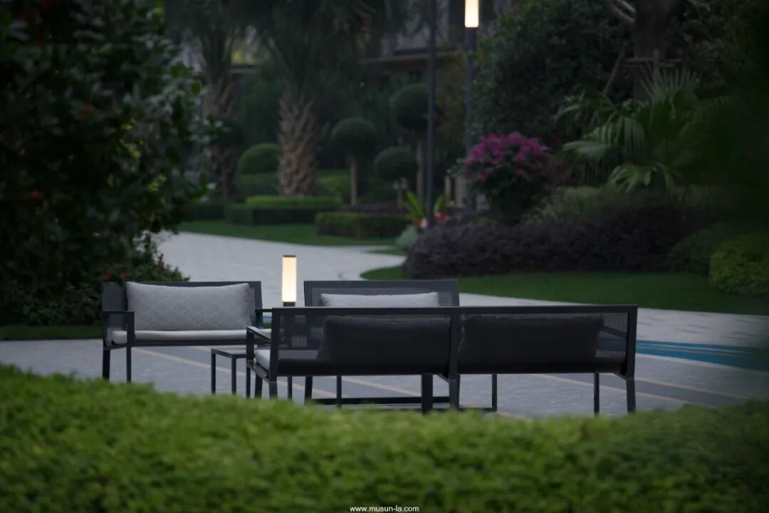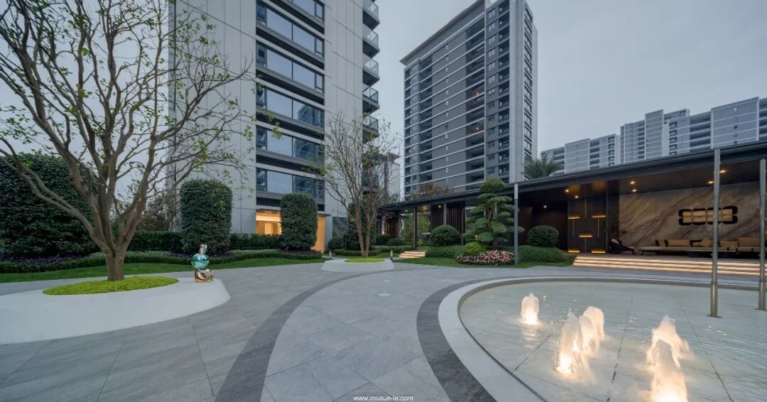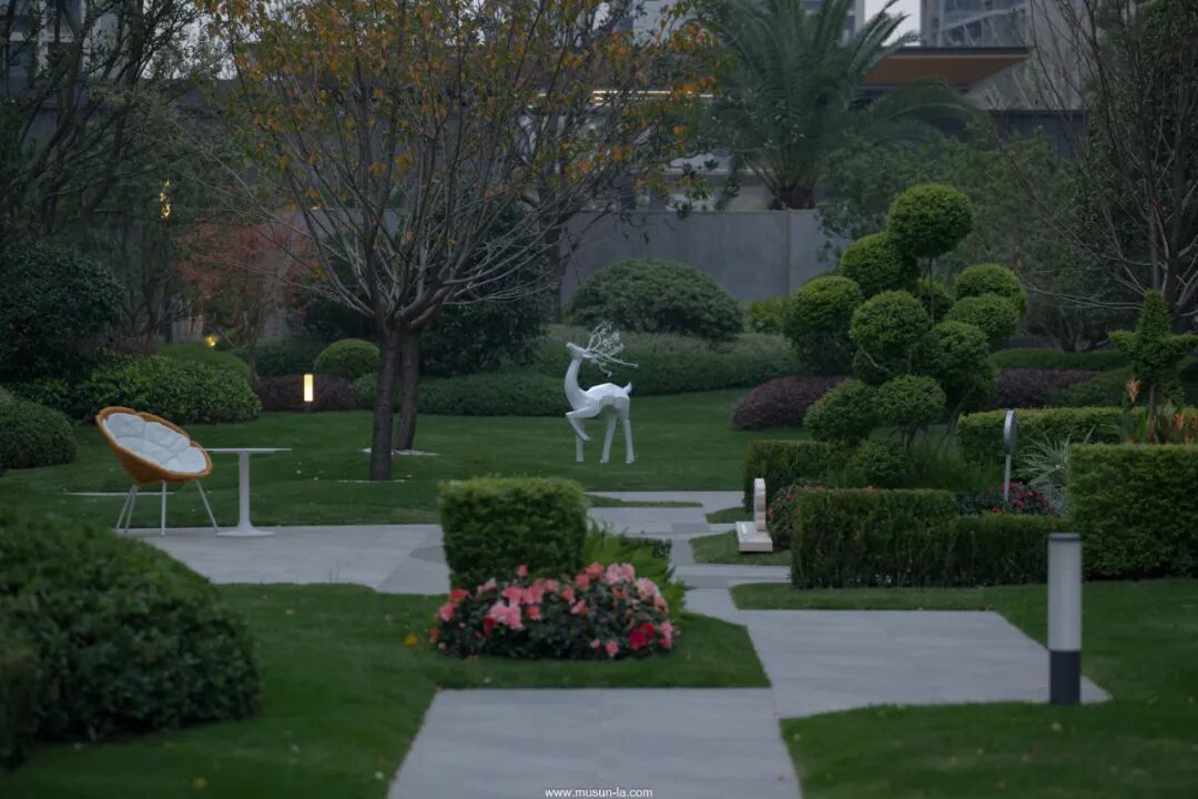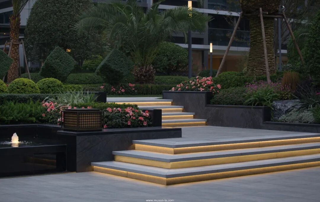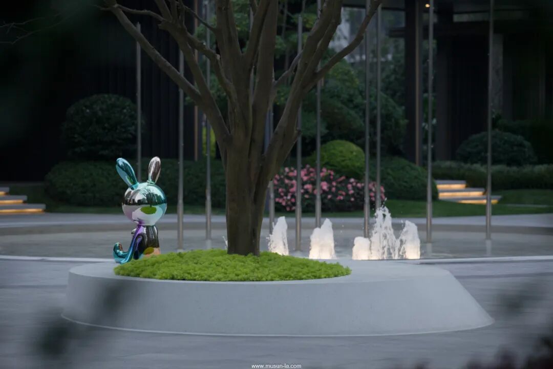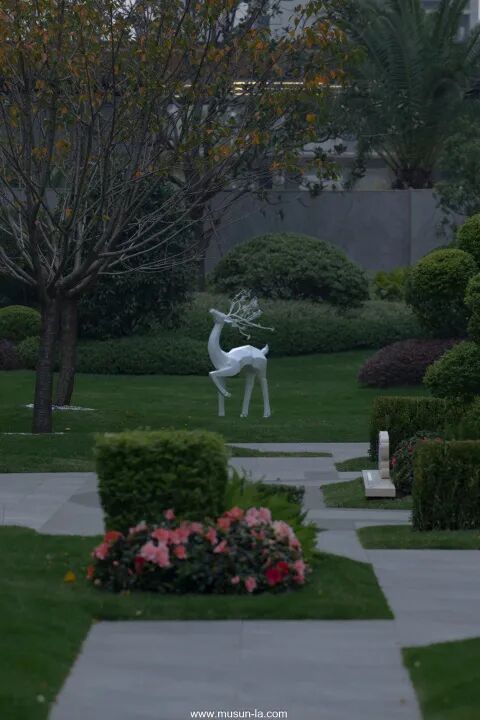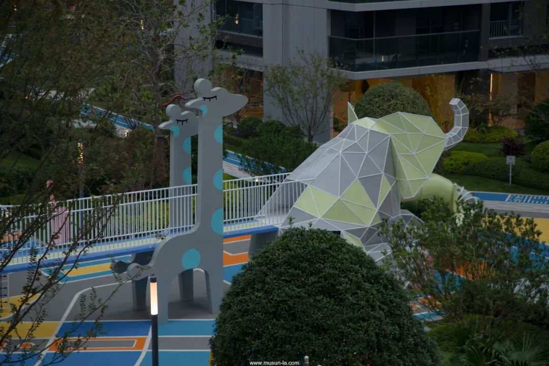 叠水与涌泉,海枣树与花境,景墙与光影,构建多元空间场景,悠然归心之所 致敬立体主义大师布拉克的几何解构艺术, 通过直线切割、 块面叠合等设计语言, 在二维平面营造三维空间的视觉韵律。 迎宾水庭倒映天光云影,脚步随涟漪慢下来 镜面水庭、叠瀑、构成水的双重奏, 演绎"无水不园"的东方意境。 空间由旱喷广场为中心点向外扩散,转换为特色碎石铺装、矩形立体特色树池,整体空间给人向心聚 镜面水景将建筑纳入画框, 完成从喧嚣到宁静的过渡; 以黄金比例重组,形成极具张力的现代构图, 让建筑与自然对话。 下沉式草坪如柔软星毯,星座灯饰悄然点亮开放的社交草坪旁设置高低错落的座凳,以开放的氛围暗示场地功能。 自然中的客厅,精神情感的共鸣,自然中的疗愈空间 形成这一片独属于女主人的花园空间 以“神奇动物”为灵感构筑立体乐园,穿梭其间,故事悄然生长,奇想不设边界 自然不仅仅是一种风景,对孩子们来说,是一位重要的老师 春知学堂中多种多样的植物 让孩子们可以亲近自然,观察自然,感受自然 专业运动系统融入静谧夜色,每一次呼吸皆是与身心的和谐对话 这不是简单的住宅景观,而是一场关于生活方式的革命。 在滨江兴耀·湖悦岚湾, 我们重新定义"家"的维度——它可以是孩子的冒险乐园, 是女主人的下午茶花园,是长者的冥想庭院, 更是每个人心中的度假圣地。 让设计消失,让生活浮现。 ———项目信息——— 项目名称:滨江兴耀·湖悦岚湾 业主单位:兴耀房产、滨江地产 完成时间:2024.11 占地面积:38155㎡ 项目地点:杭州 景观设计:MUSUN木杉景观 方案团队:JON0,邹余浩,黎红,吴彦融 葛涛,刘钦,陈滢颖 施工图团队:章华立、汪晓旋、金凌敏、邵琪琪 植物设计:李瑞旭 给排水:张婷 摄影:陈晓婷 严静 后期:严静 撰文:严静 刘钦