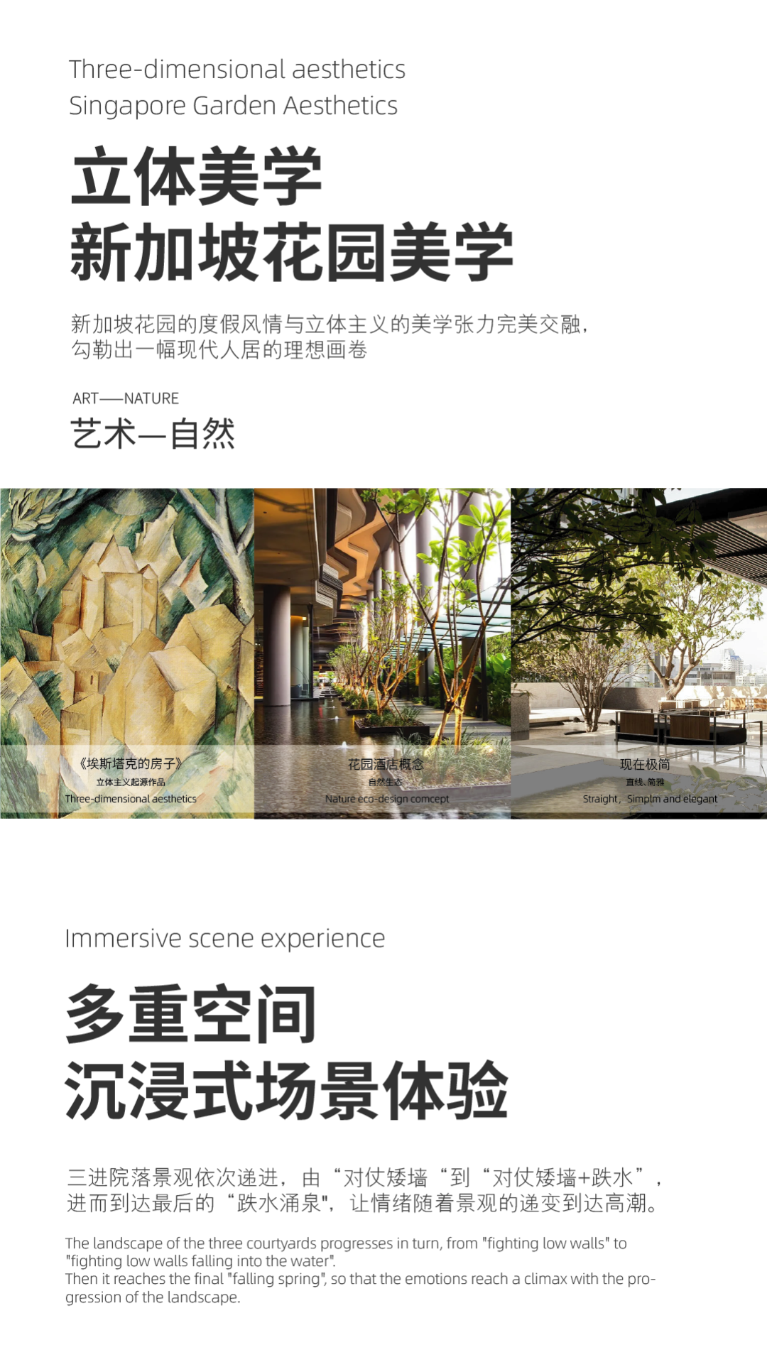 项目设计灵感源自立体主义的起源作品《埃斯塔克的房子》。立体主义以其独特的艺术手法,将物体解构、重组,用几何切面展现三维形态于二维平面之上。我们追求的是一种几何形体的美感,一种由直线、曲线构成的图形、块面堆积与交错所带来的趣味和情调。 在景观设计中,...