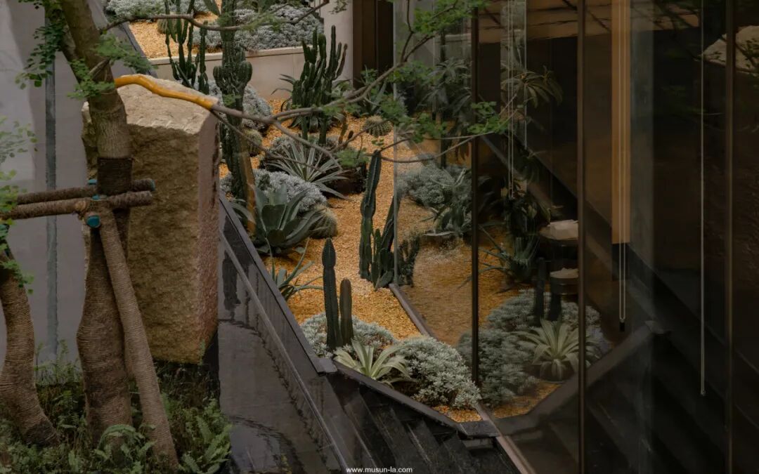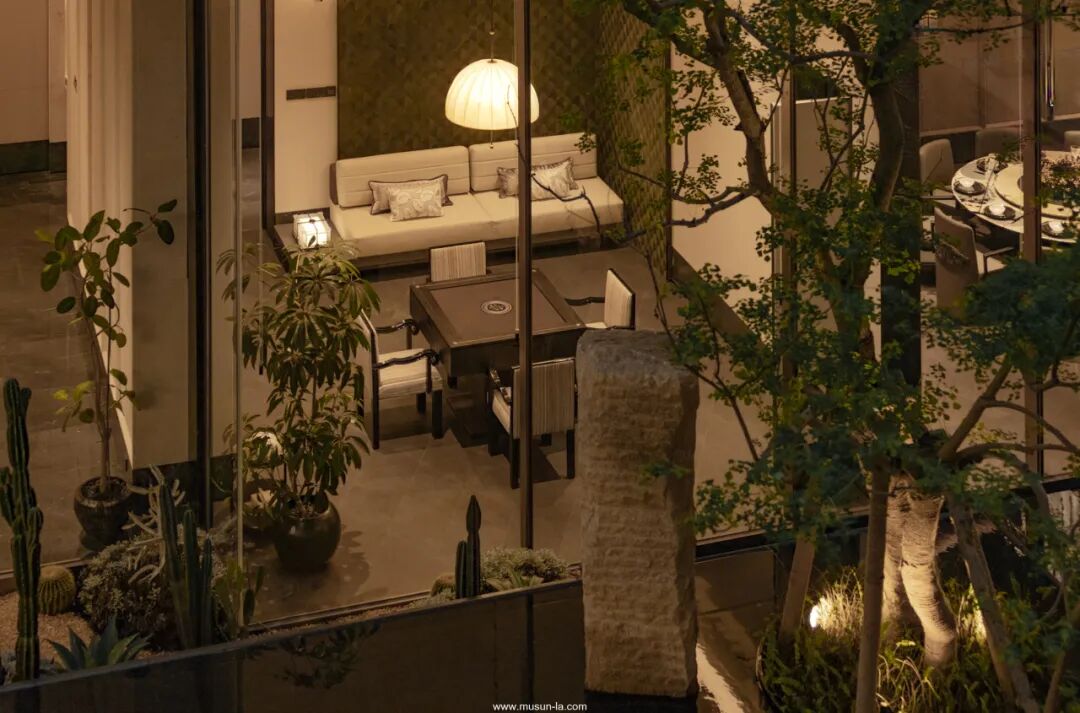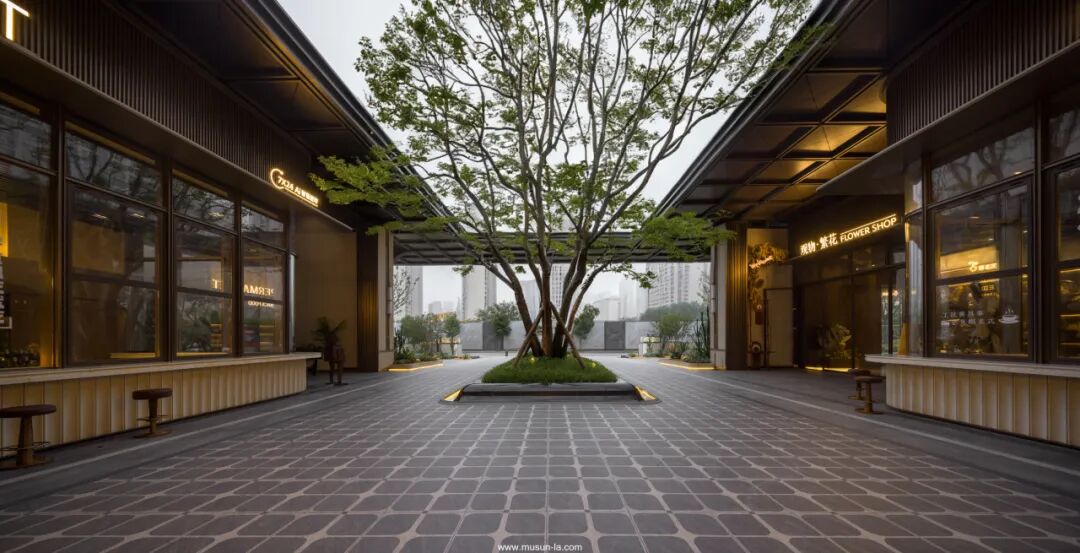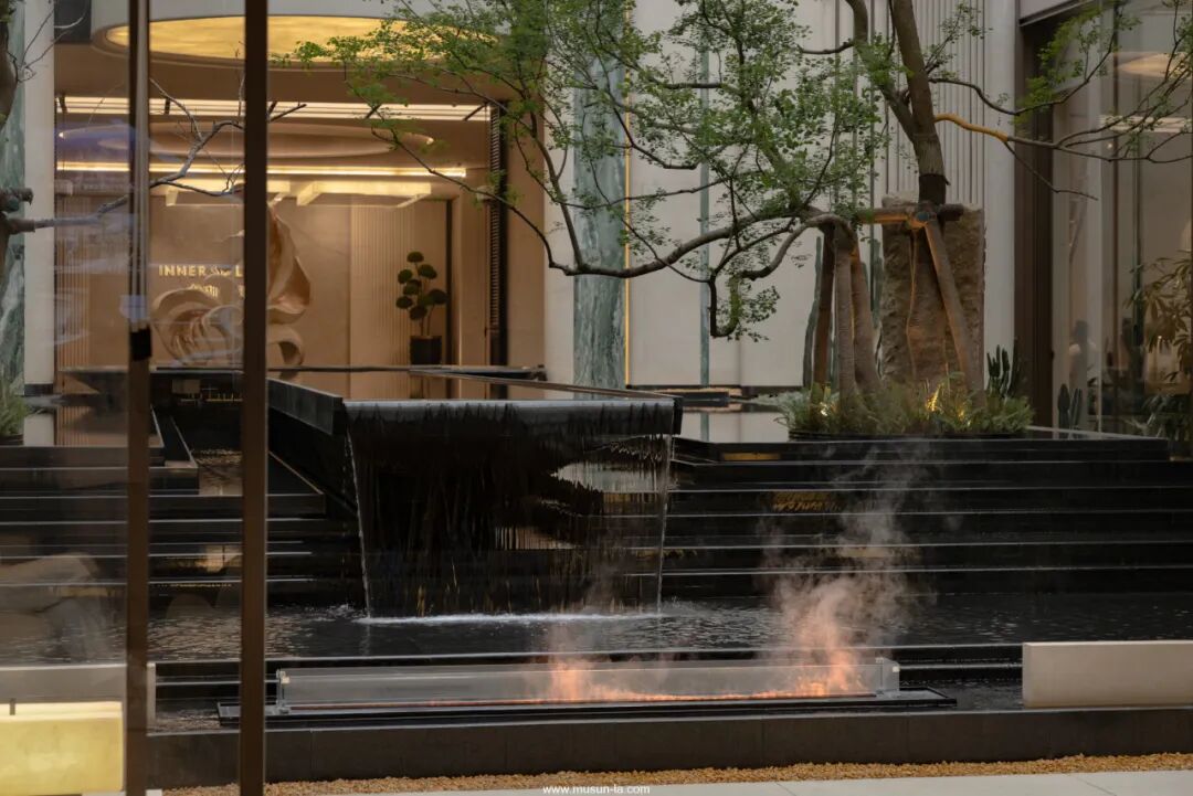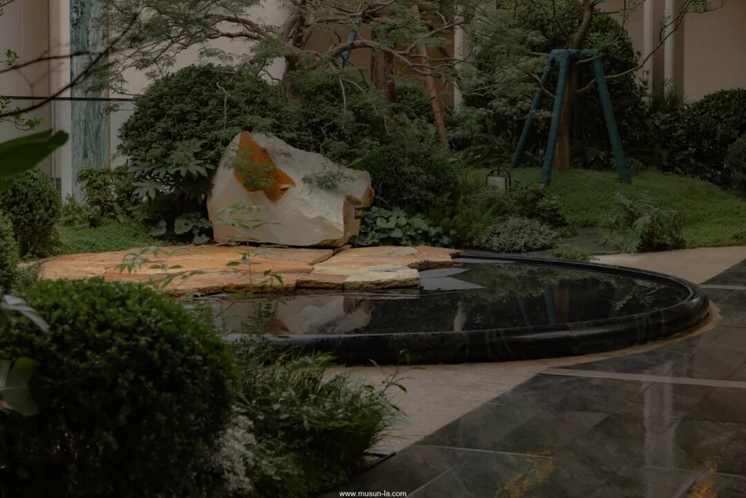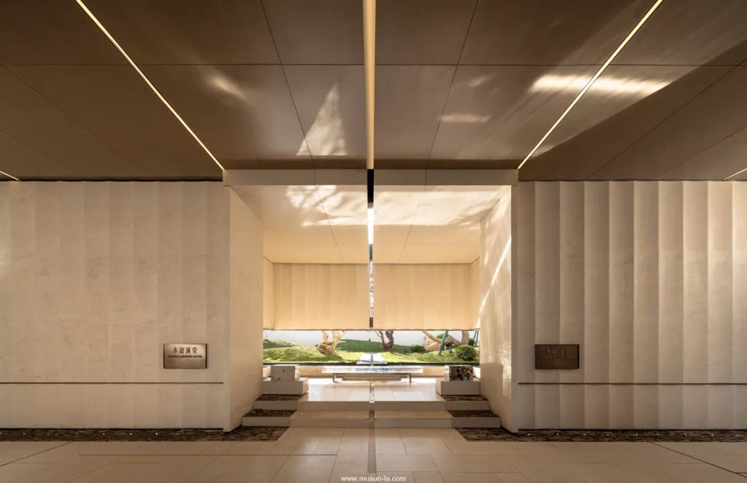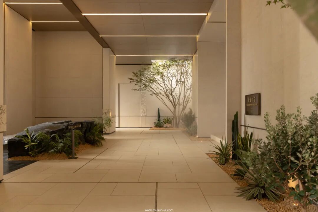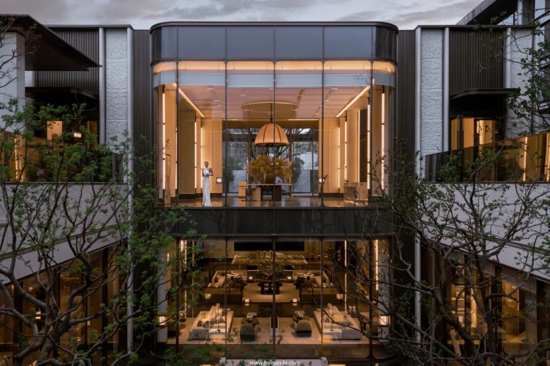 / 让建筑生长于自然 让生活回归于诗意 示范区主入口以69米超尺度城市界面展开,融合7米高柱式挑檐,复刻奢华酒店落客环岛设计,营造极具仪式感的归家序章。 特选10米高丛生铁冬青“树王”作为迎归象征,结合三重奢石景墙与静谧镜面水景,构筑出充满领域感的城市界面。 神树与水景相互映衬,天光与倒影交织成震撼视觉,在神性与光影的渗透中,形成引人入胜的精神场域,强化了归途中的仪式感与体验深度。 光与自然交织出神性艺术空间。长达20米的超长悬挑叠水与13米高的光影悬亭,共同致敬经典美学,赋予空间强烈的仪式感,呈现极萃艺术之美。 光成为空间的语言,细腻地提升着场景变化的层次,进一步烘托出神性空间独有的美学氛围。 22米进深的下沉水庭,延续了对路易斯·康、安藤忠雄等建筑大师光影哲思的致敬。整个场域通过“视线穿透、三重爆点”的布局手法,最终构筑出一处充满神性的艺术体验空间。 20米悬挑叠水、13米光影悬亭,以及悬浮的兰花雕塑,在光线的渲染下共同塑造空间情绪。 庭院向下生长,生活向上延伸。宴会厅、棋牌室、台球室、健身房,每一扇窗都成为流动的画框,使建筑功能与自然意趣深度交融,达成无界的共鸣。 窗内是生活主场 窗外是自然画卷 / 空间下沉,意境无界 森栖之境以《林泉高致》为灵感,将古典造园手法与现代艺术相融合,构建出一个集会客、休息与观赏于一体的慢生活空间,演绎与自然共生共话的生活场景。 以日式枯山水为蓝本,融合红枫、碎拼铺装与苔藓地衣,构筑一方禅意疗愈庭院 巧妙借景足立美术馆,以框景手法分层引入绿意,形成近观鸡爪槭、中赏孤植红枫、远借林冠线的立体生态长卷。 「后记」 / 光不只是照明,而是空间的情绪; 林不只是绿化,而是生活的背景。 / 光影氛围 / 空间营造 / 植物意境 / ———项目信息——— 项目名称:龙湖·观萃 业主单位:龙湖集团 甲方管理团队:王聪 李星池 刘航铭 朱雯瑜 完成时间:2025.09 占地面积:10696.34㎡ 项目地点:长沙 景观设计:MUSUN木杉景观 方案团队:邹余浩 黎红 葛涛 陈滢颖 吴彦融 张润 刘钦 赵佳乐 施工图团队:周云 孙柳柳 廖涛涛 陈浩楠 植物设计:吴林 水电设计:张婷 结构设计:周文强 摄影:陈晓婷 严静 黄闰 摄像:黄闰 后期:严静 撰文:陈晓婷
