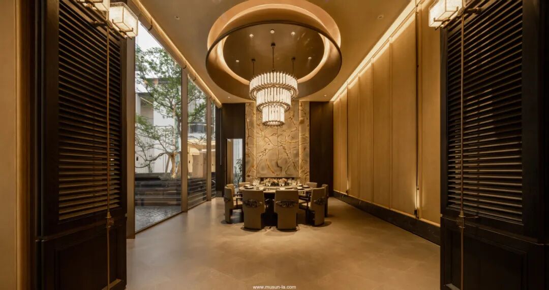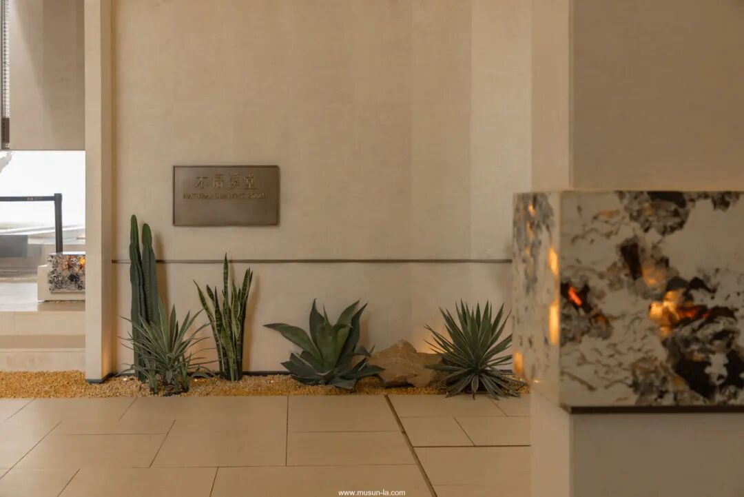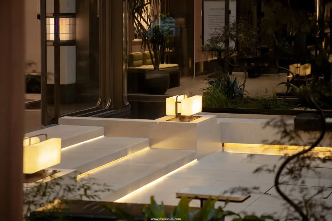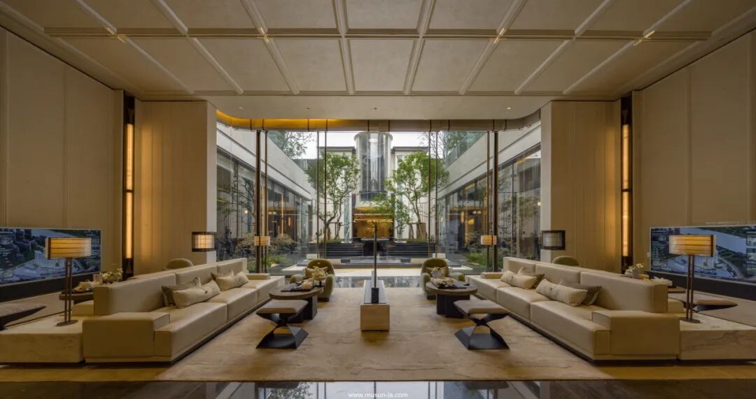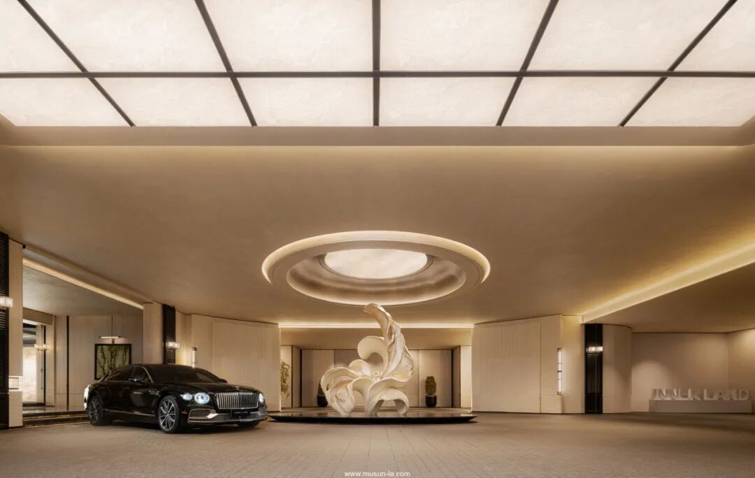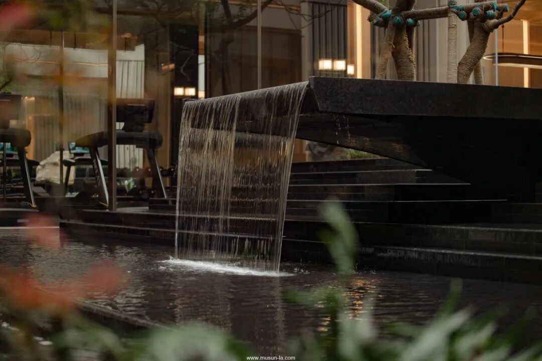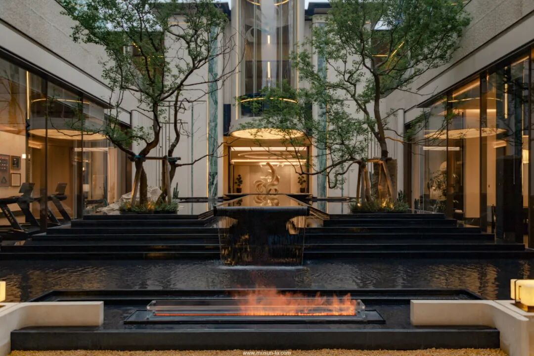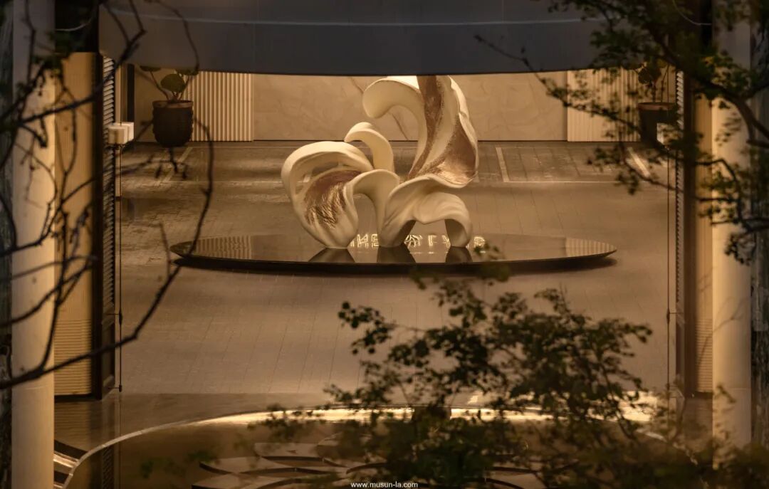 / 让建筑生长于自然 让生活回归于诗意 示范区主入口以69米超尺度城市界面展开,融合7米高柱式挑檐,复刻奢华酒店落客环岛设计,营造极具仪式感的归家序章。 特选10米高丛生铁冬青“树王”作为迎归象征,结合三重奢石景墙与静谧镜面水景,构筑出充满领域感的城市界面。 神树与水景相互映衬,天光与倒影交织成震撼视觉,在神性与光影的渗透中,形成引人入胜的精神场域,强化了归途中的仪式感与体验深度。 光与自然交织出神性艺术空间。长达20米的超长悬挑叠水与13米高的光影悬亭,共同致敬经典美学,赋予空间强烈的仪式感,呈现极萃艺术之美。 光成为空间的语言,细腻地提升着场景变化的层次,进一步烘托出神性空间独有的美学氛围。 22米进深的下沉水庭,延续了对路易斯·康、安藤忠雄等建筑大师光影哲思的致敬。整个场域通过“视线穿透、三重爆点”的布局手法,最终构筑出一处充满神性的艺术体验空间。 20米悬挑叠水、13米光影悬亭,以及悬浮的兰花雕塑,在光线的渲染下共同塑造空间情绪。 庭院向下生长,生活向上延伸。宴会厅、棋牌室、台球室、健身房,每一扇窗都成为流动的画框,使建筑功能与自然意趣深度交融,达成无界的共鸣。 窗内是生活主场 窗外是自然画卷 / 空间下沉,意境无界 森栖之境以《林泉高致》为灵感,将古典造园手法与现代艺术相融合,构建出一个集会客、休息与观赏于一体的慢生活空间,演绎与自然共生共话的生活场景。 以日式枯山水为蓝本,融合红枫、碎拼铺装与苔藓地衣,构筑一方禅意疗愈庭院 巧妙借景足立美术馆,以框景手法分层引入绿意,形成近观鸡爪槭、中赏孤植红枫、远借林冠线的立体生态长卷。 「后记」 / 光不只是照明,而是空间的情绪; 林不只是绿化,而是生活的背景。 / 光影氛围 / 空间营造 / 植物意境 / ———项目信息——— 项目名称:龙湖·观萃 业主单位:龙湖集团 甲方管理团队:王聪 李星池 刘航铭 朱雯瑜 完成时间:2025.09 占地面积:10696.34㎡ 项目地点:长沙 景观设计:MUSUN木杉景观 方案团队:邹余浩 黎红 葛涛 陈滢颖 吴彦融 张润 刘钦 赵佳乐 施工图团队:周云 孙柳柳 廖涛涛 陈浩楠 植物设计:吴林 水电设计:张婷 结构设计:周文强 摄影:陈晓婷 严静 黄闰 摄像:黄闰 后期:严静 撰文:陈晓婷