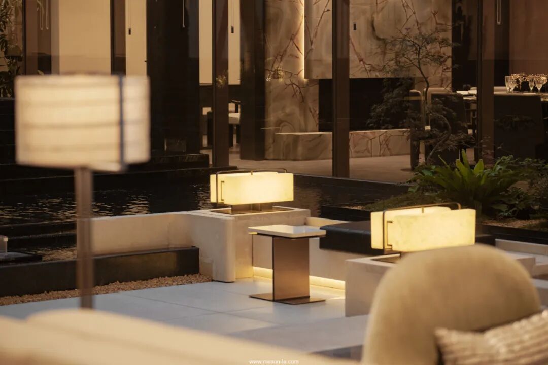 「木脉之境」以神木为引、镜水为照,营造天光倒影的震撼视觉;「光曜之境」用20米长廊与悬挑水景,致敬路易斯康与安藤忠雄的光影美学;「森润花园」以五重场景打造归心森林——栖水归林、木语溪堂、林湖行禅……每一处皆成画。 设计融合传统造园手法与现代极萃美...