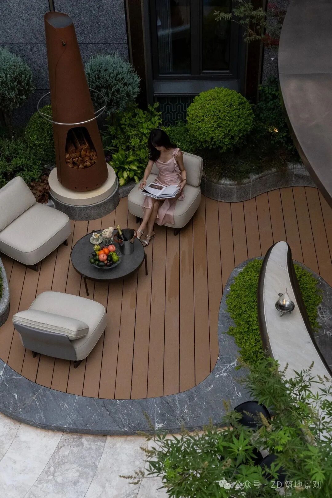 The design adopts a free curve shape to create a casual, comfortable, and cozy garden living scene, supplementing indoor functions and creating more possibilities for garden activities.