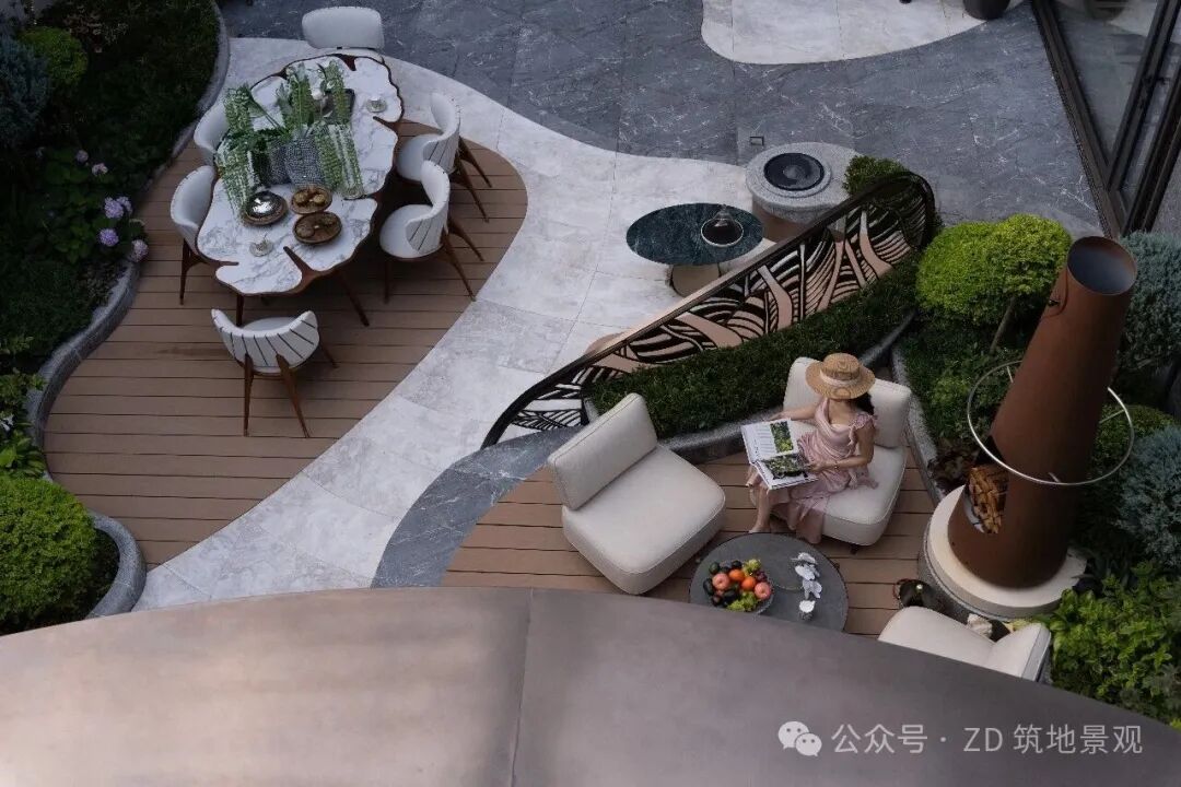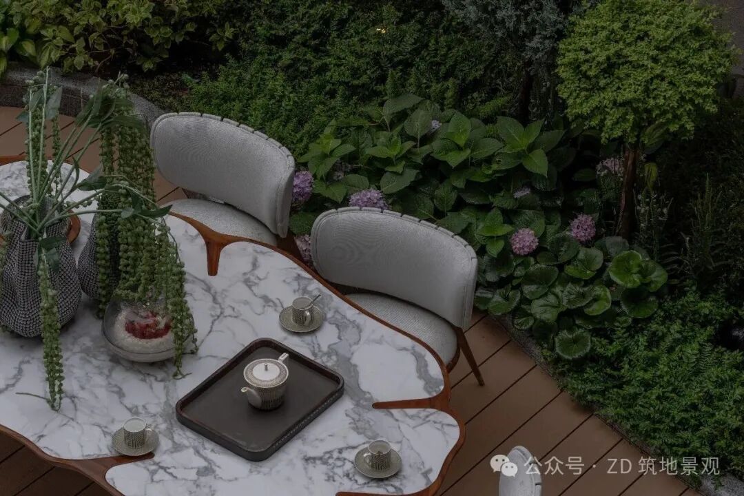 Using green plants and flowers as the natural background, the sofa area, dining area, and bar area carry daily life. People rest and communicate here, making the garden an artistic container of life. Every detail tells the flowing poetry in the space. Let the garden combine the warmth of life with artistic style, creating a flowing and layered space.