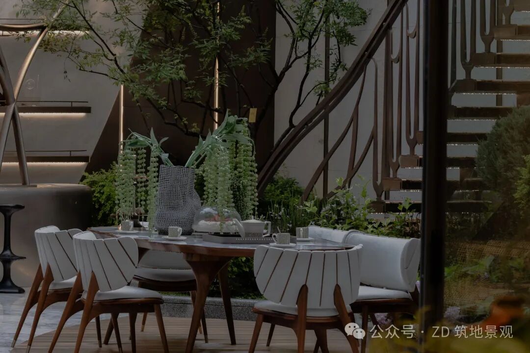 In the exquisite sunken courtyard, life and art quietly blend together. Smooth lines outline the flowing landscape space, and curved structures resemble artistic brushstrokes, breaking the boundaries of life. artistic staircase