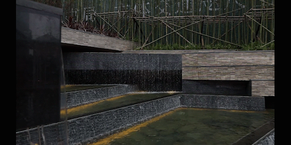 Reconstruction of the mountain stream and spring, fall waterfall in the forest, a new way of interpretation, interwoven in the modern life scene, people passing through the water, still water reflecting the moon, falling waterfall bell sound, in the quiet environment, taste the natural reality, return to the green water mountain stream.