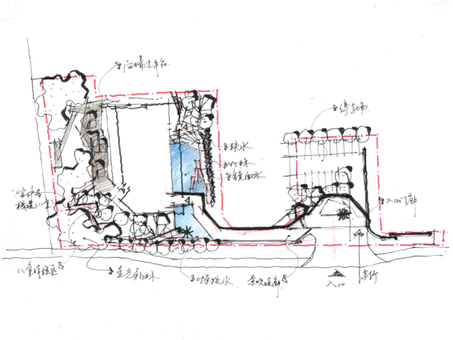 为削弱场地小的展示弱势,通过起承转折空间转换,形成不同的折点,引导人行逐步进入景观的空间世界。给于观者以小中见大,大中见细,细中见品,品中超然的自然艺术品鉴之旅。