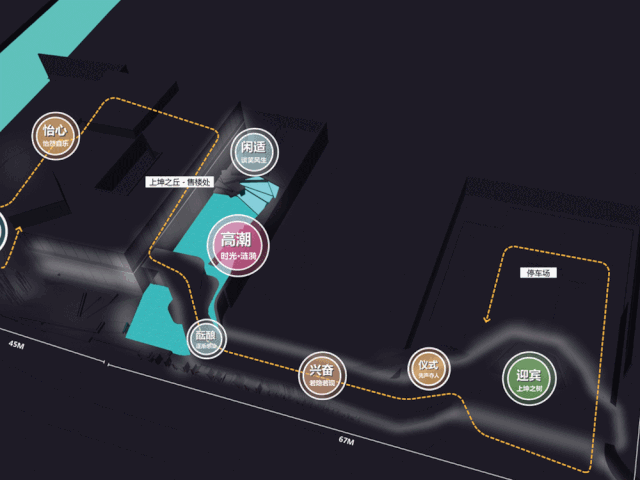 主题延续建筑上坤之丘理念,同时引入山丘的形态元素和层峦跌错构成,经艺术提取解构重组,以折线及跌错的形式重新给予“丘”的新的生命力,以全新理念缔造时尚生活美学。