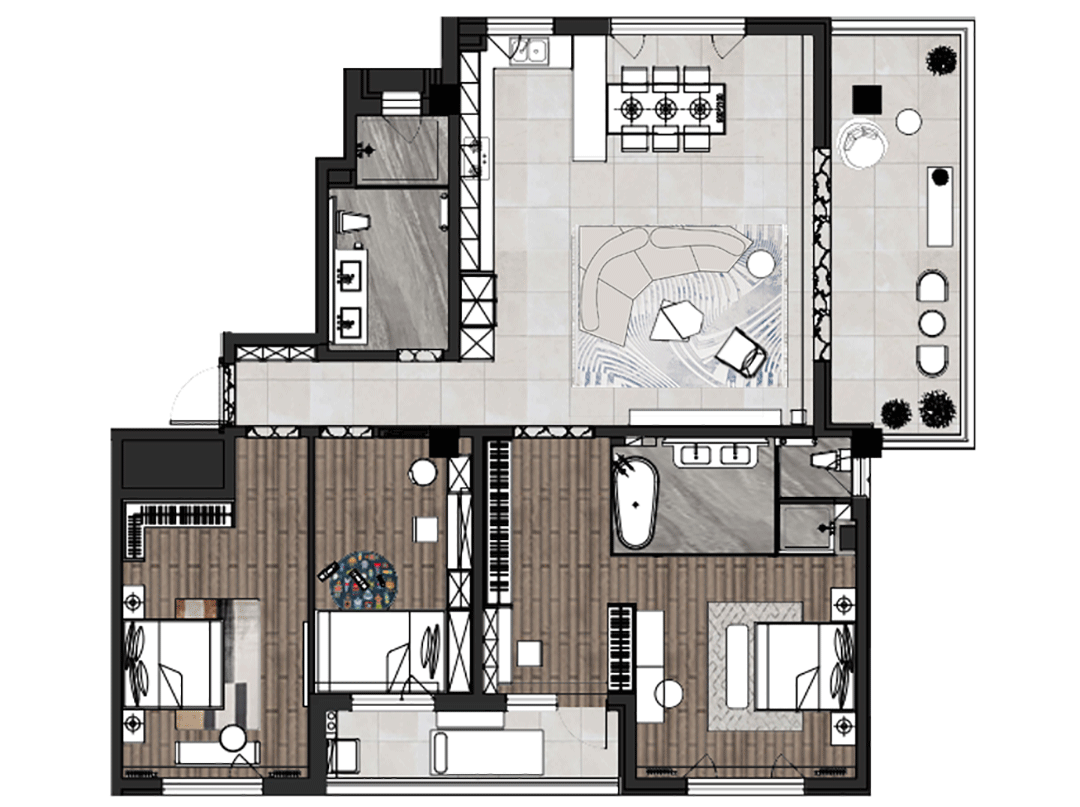 阳台——为孩子打造的娱乐区,就像是为她精心筑就的“ 巢 ”,改变空间的封闭,营造一个更加开放自由充满艺术与自然气息的居住氛围。陪伴孩子快乐成长,毫无疑问这是一个自由且艺术的居所,它是一座有生命的家宅。