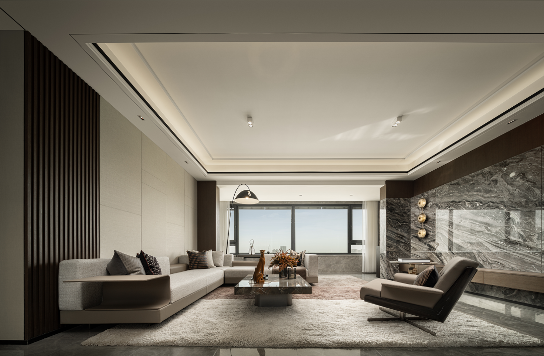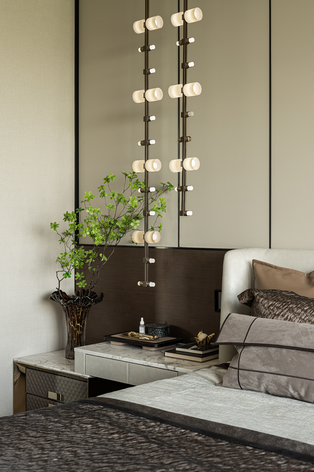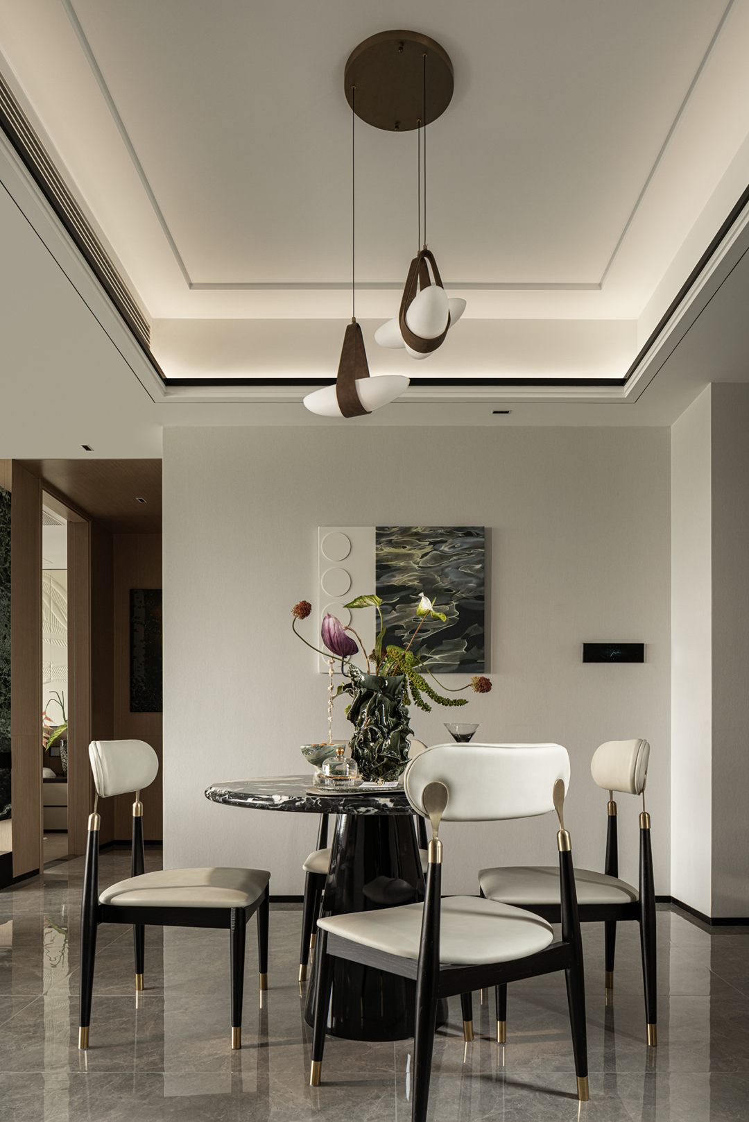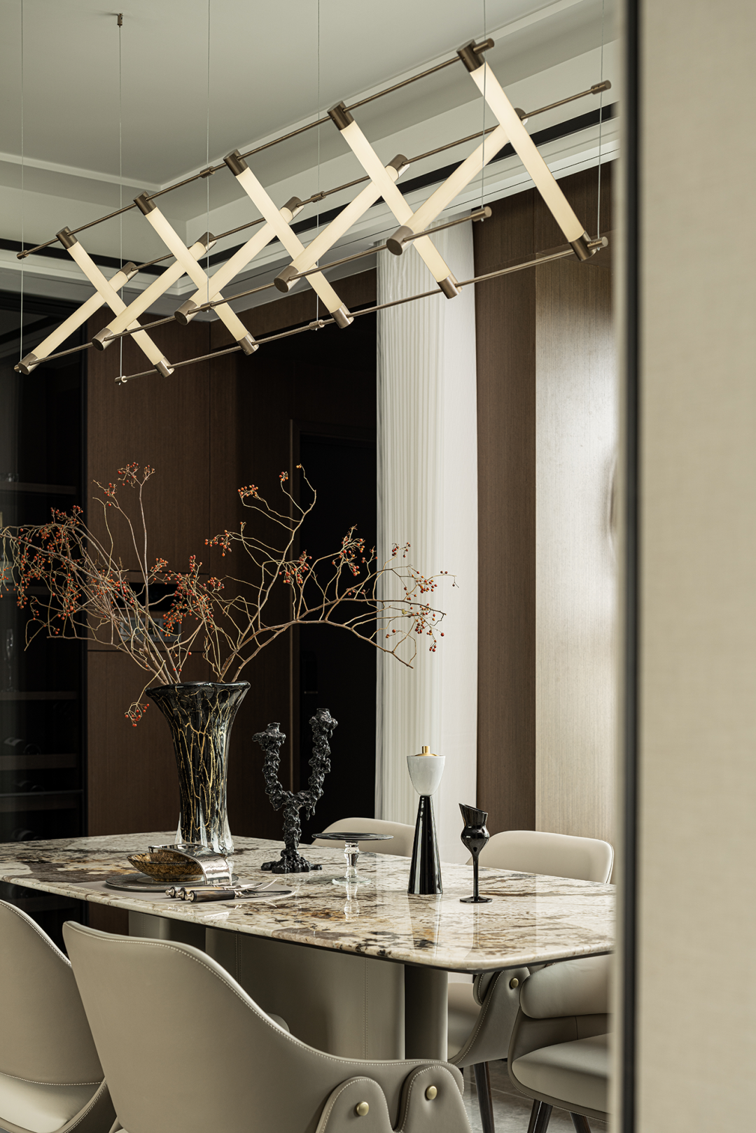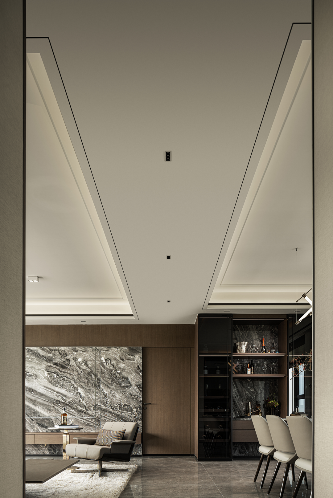 空间大量的木材、奢石、皮革等不同材质的肌理穿插运用,奠定了奢华的气质。