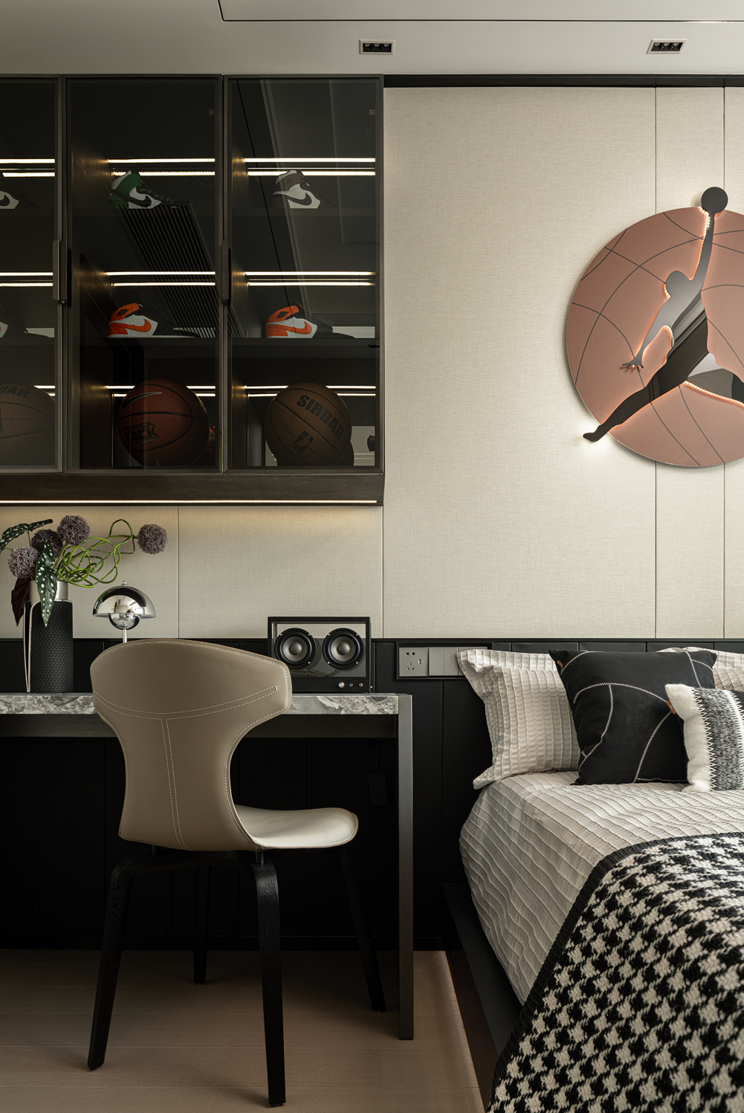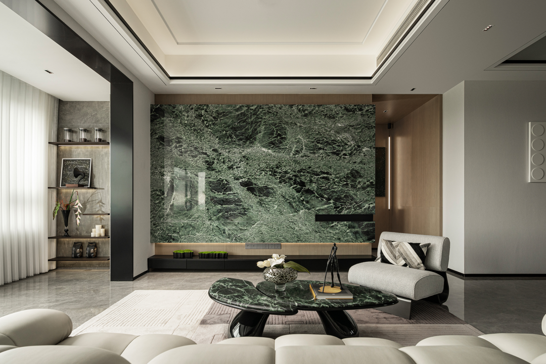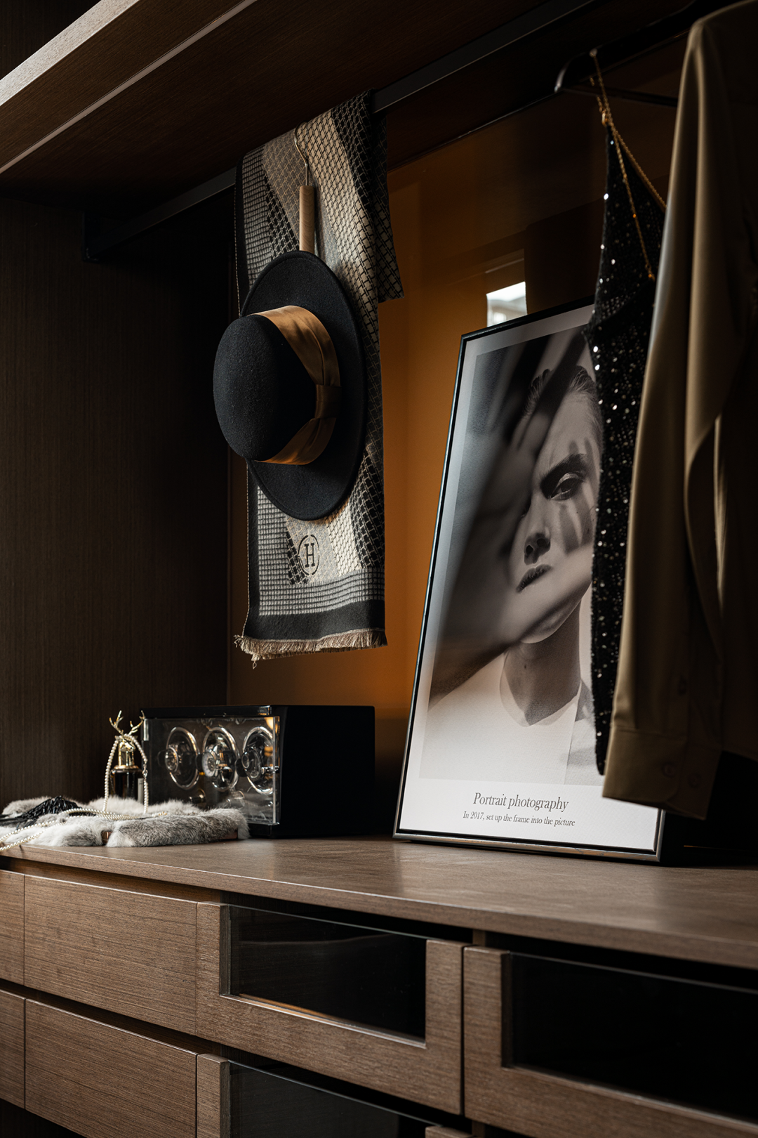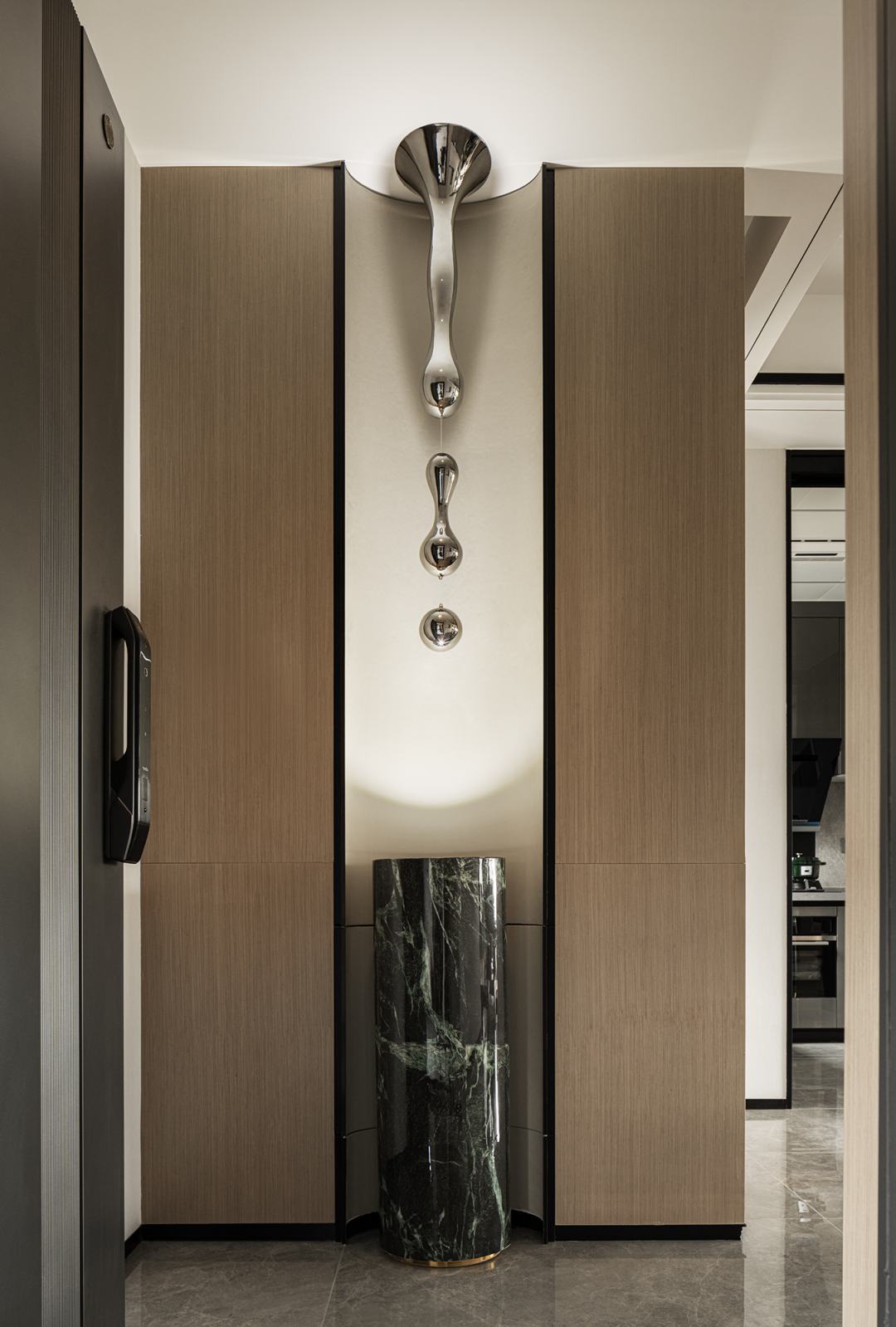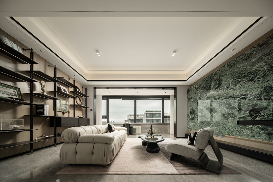 空间大量的木材、奢石、皮革等不同材质的肌理穿插运用,奠定了奢华的气质。