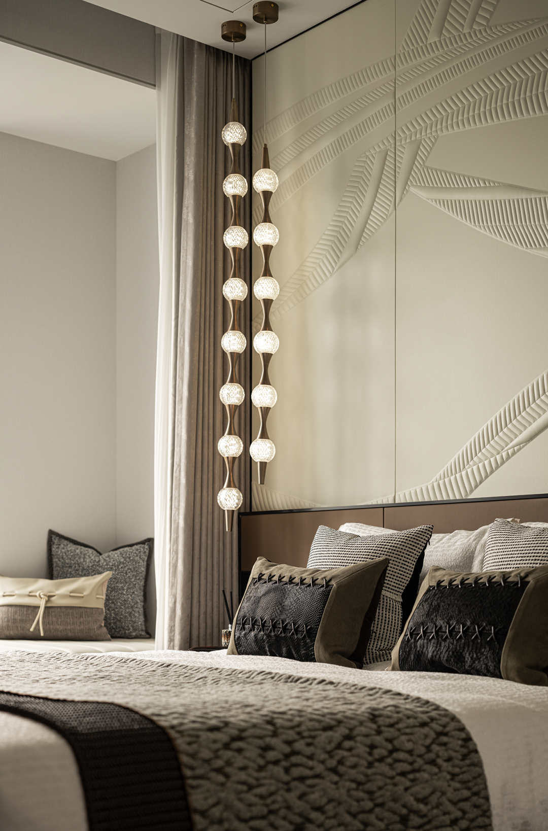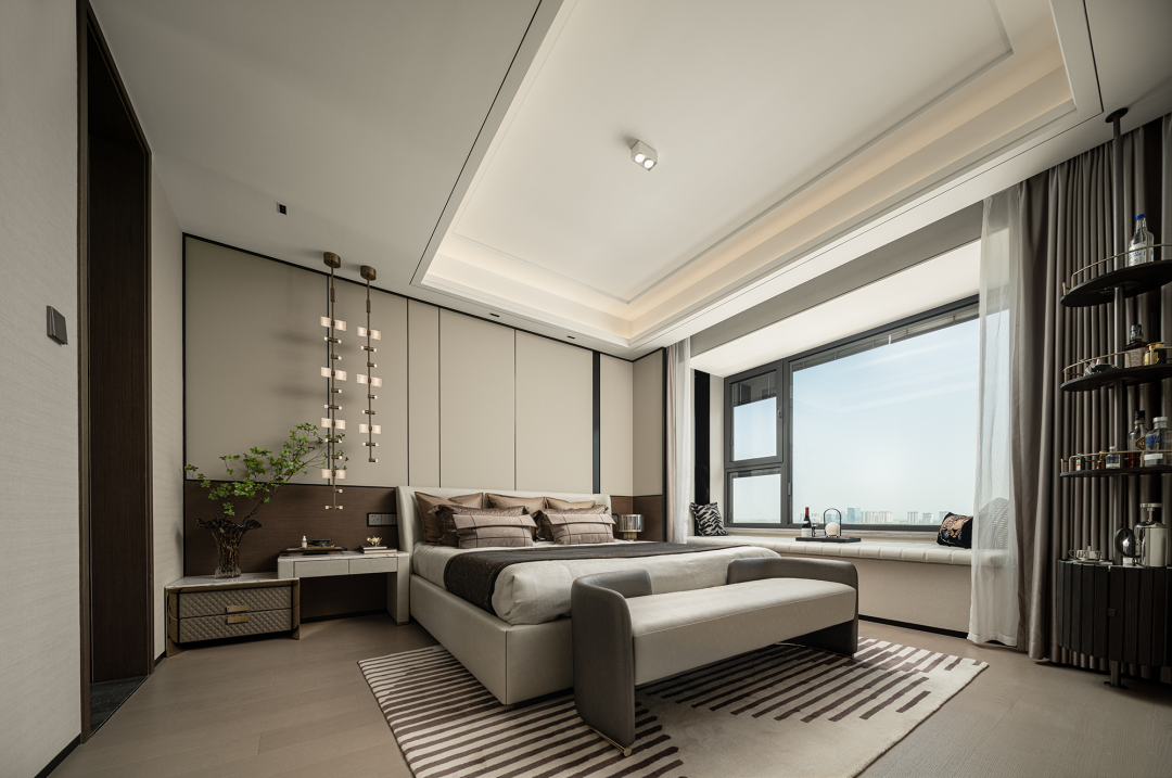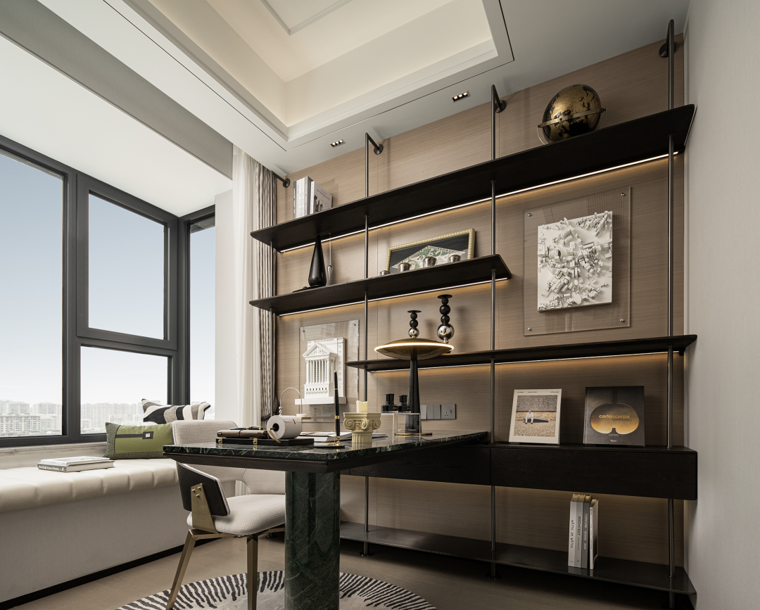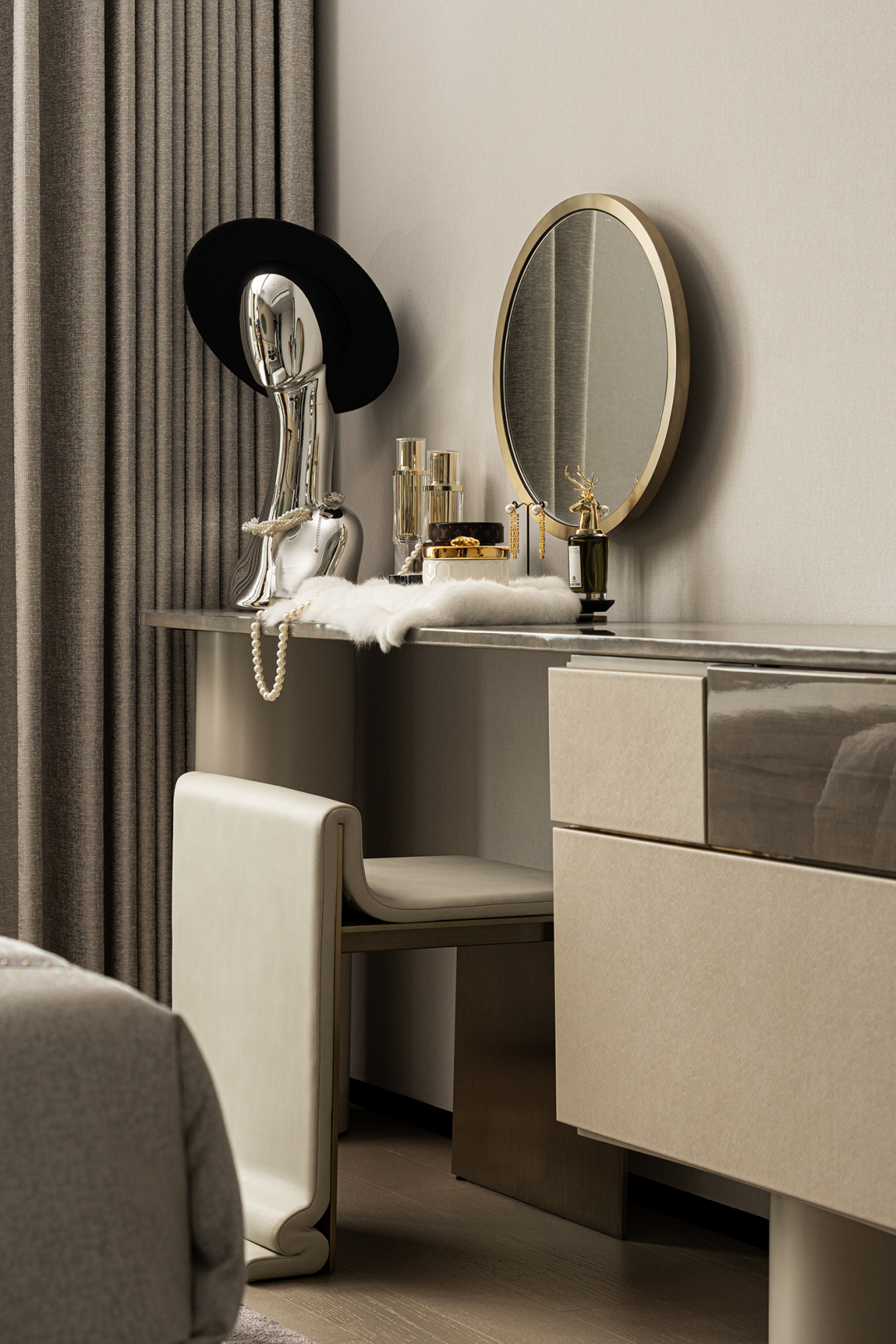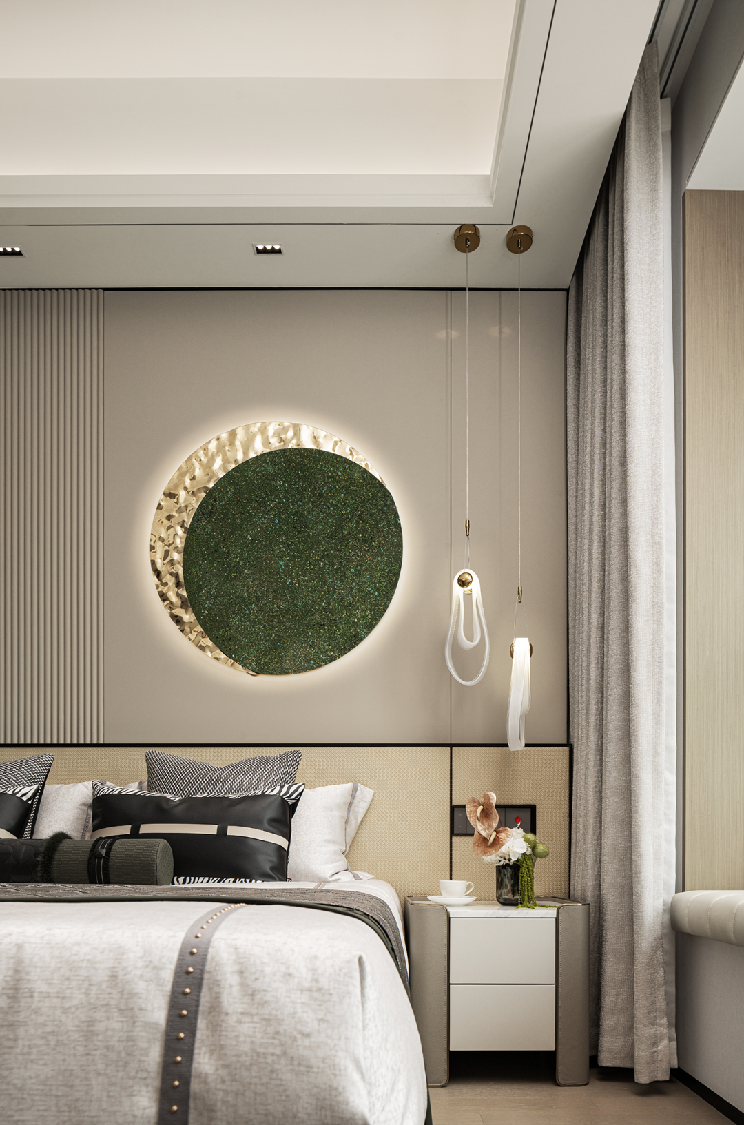 空间大量的木材、奢石、皮革等不同材质的肌理穿插运用,奠定了奢华的气质。