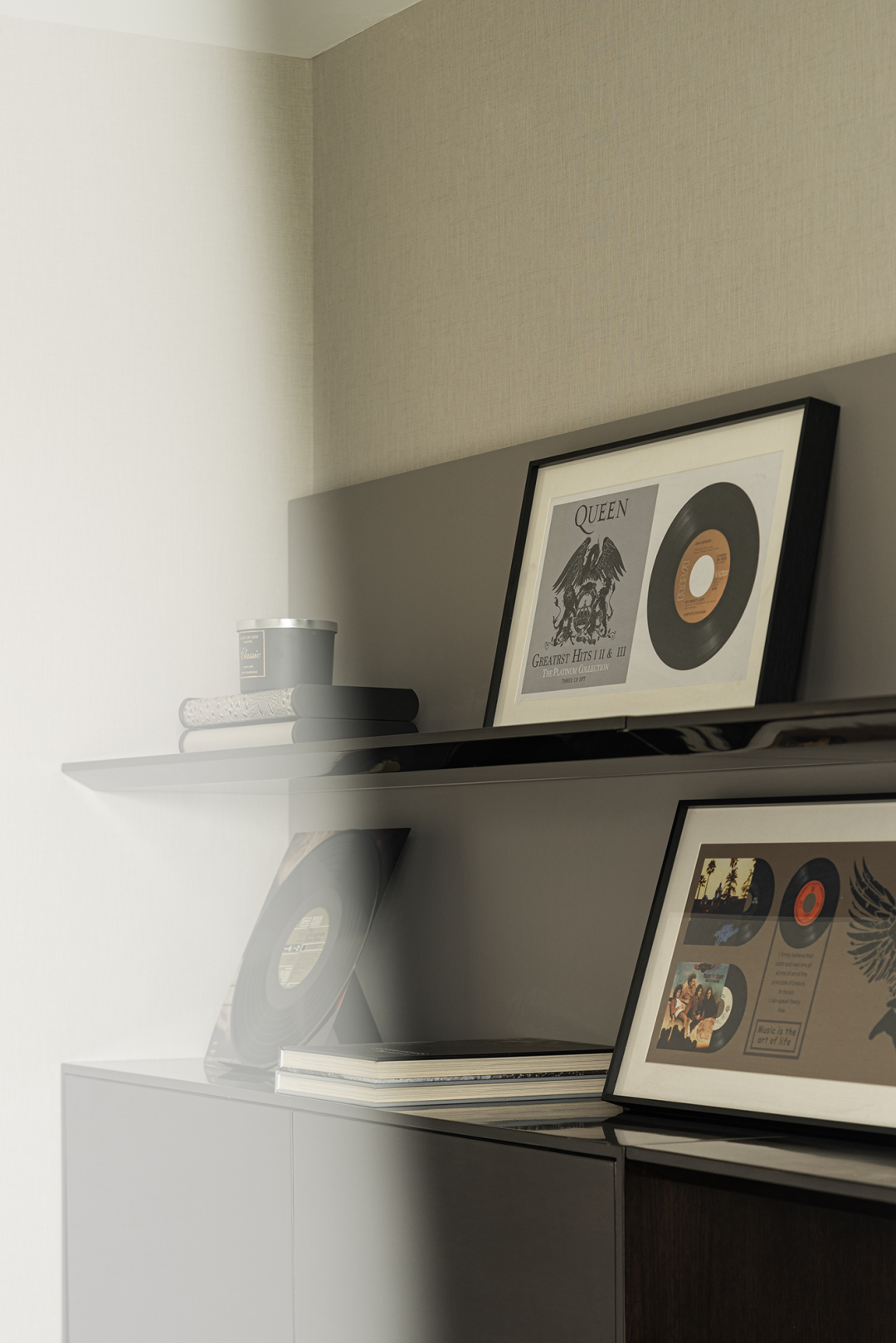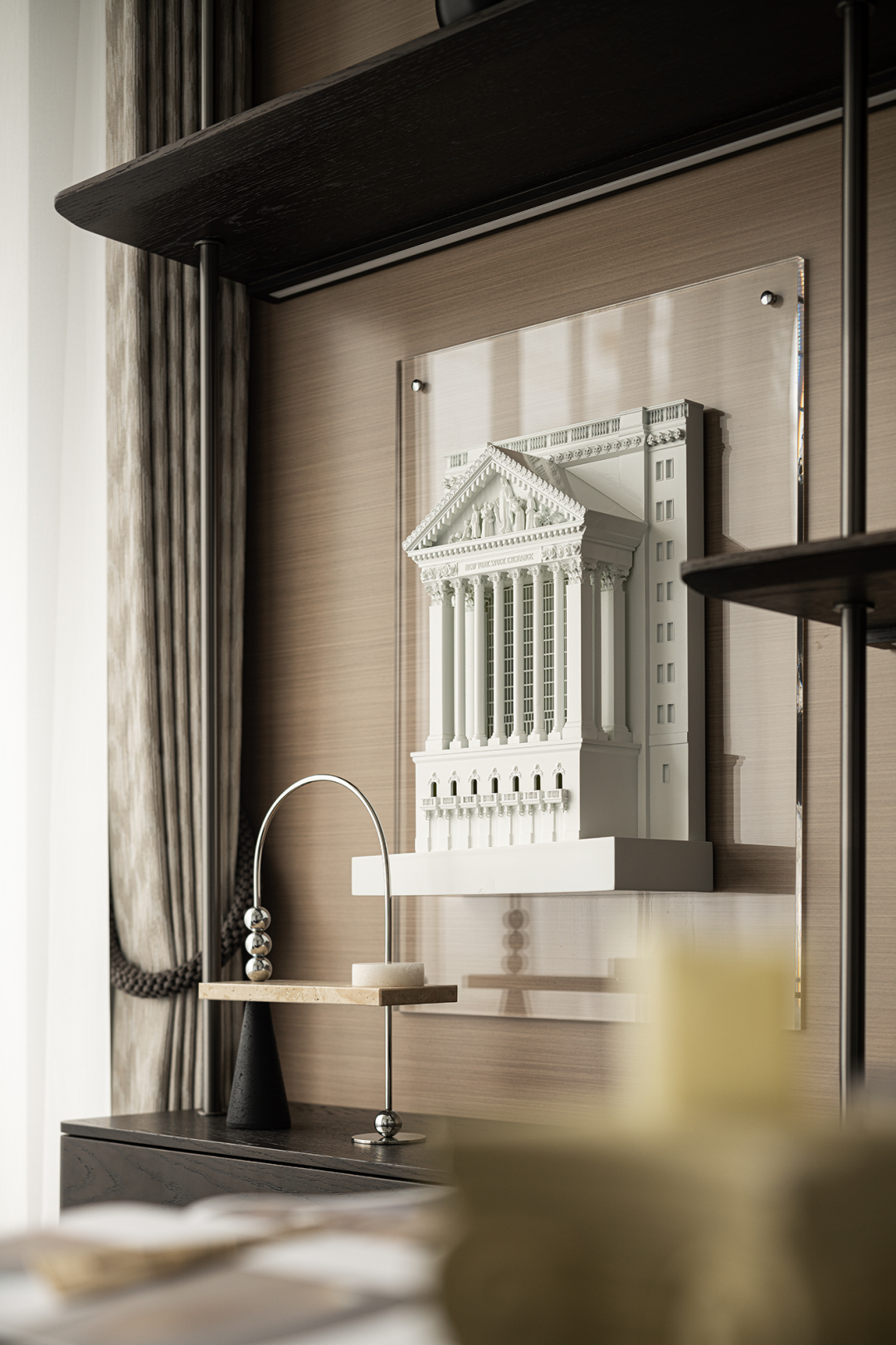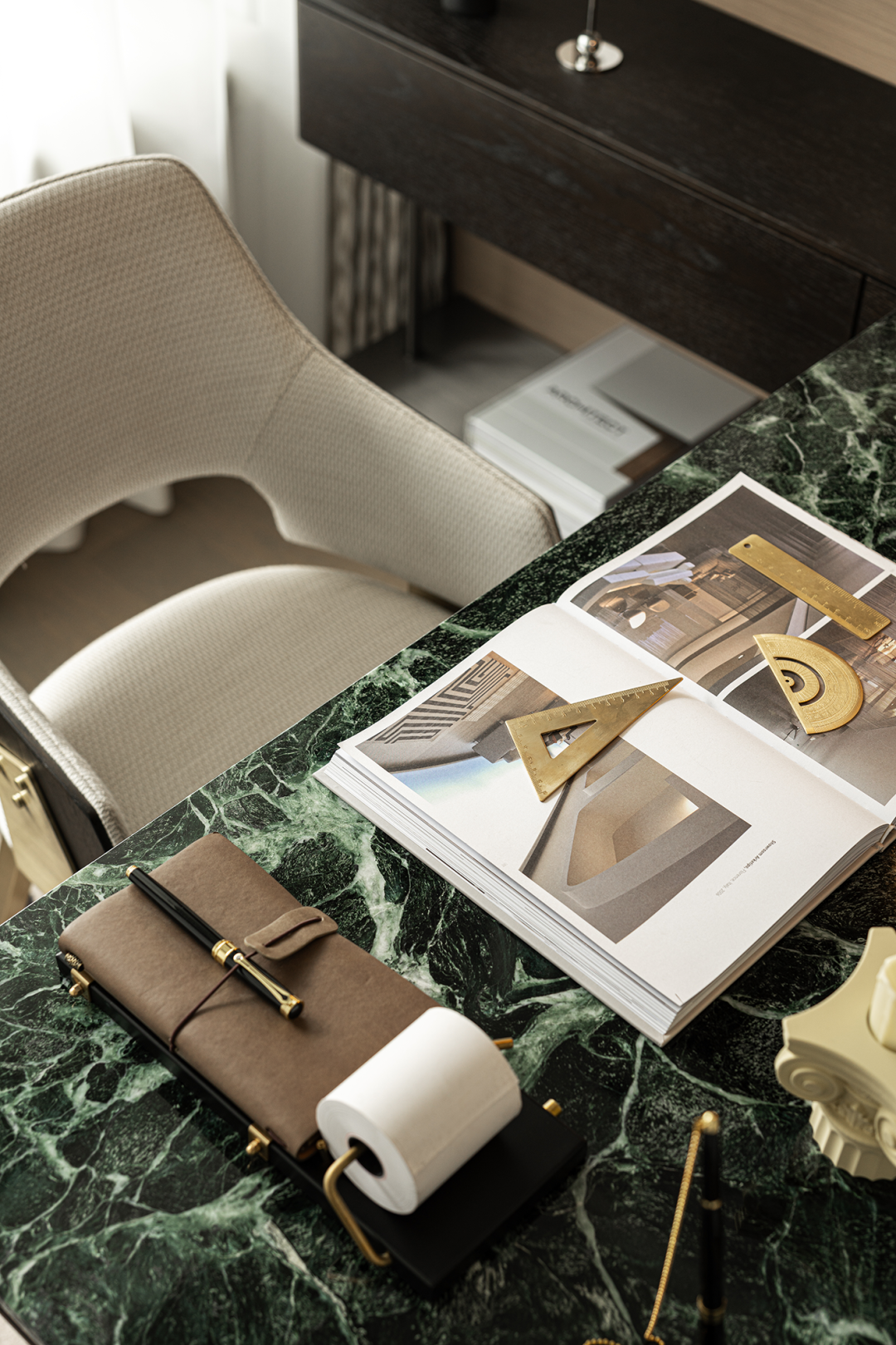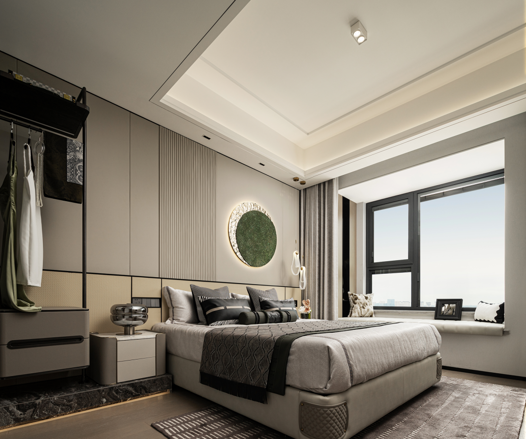 空间大量的木材、奢石、皮革等不同材质的肌理穿插运用,奠定了奢华的气质。