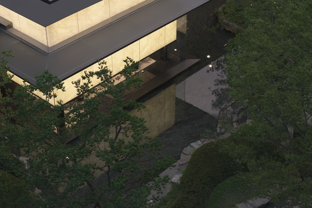 以光为引,入画水光庭院,天光云影映于水中,半露天光、半闻市井、半隐于世。