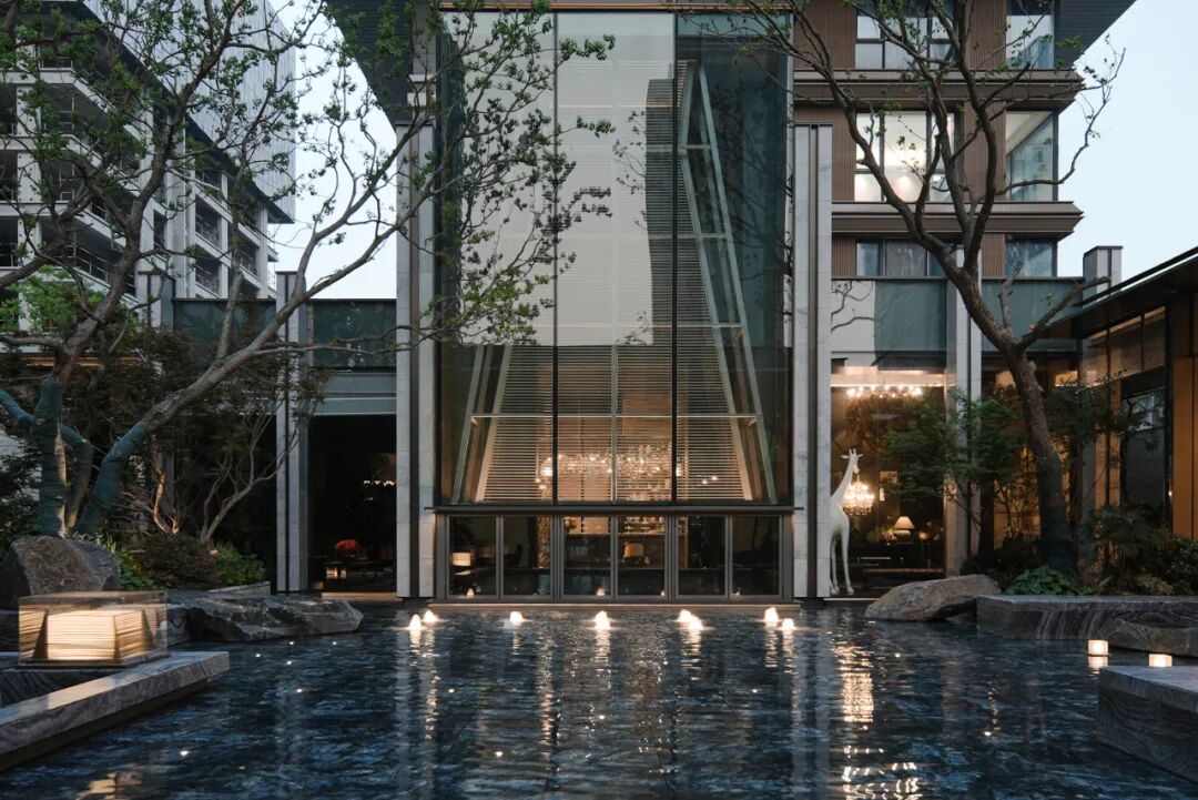 「栖于自然庭院中——私域洄游,如云静逸」 暮色渐起,淡云微度。 空间的起承转合,人文在自然的气韵里流转,摩登场的每一次优雅回眸,蕴藏着生命本真的心灵寄托。秩序、理性的交错重叠,是现代张弛的温度与时尚温润的肌理;一池水韵的沉浸式洄游,是隐奢诗意生活的心旅归处。 Twilight is gradually rising, with faint clouds. The beginning and ending of space, the flow of humanity in the charm of nature, and every elegant look back in the modern field contain the true spiritual sustenance of life. The interweaving and overlapping of order and rationality is the warm texture of modern relaxation and fashion; The immersive migration of a pool of water is the destination of the hidden luxury poetic life.
