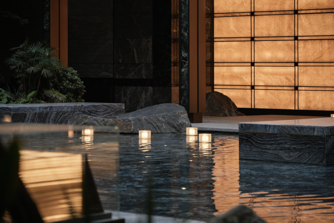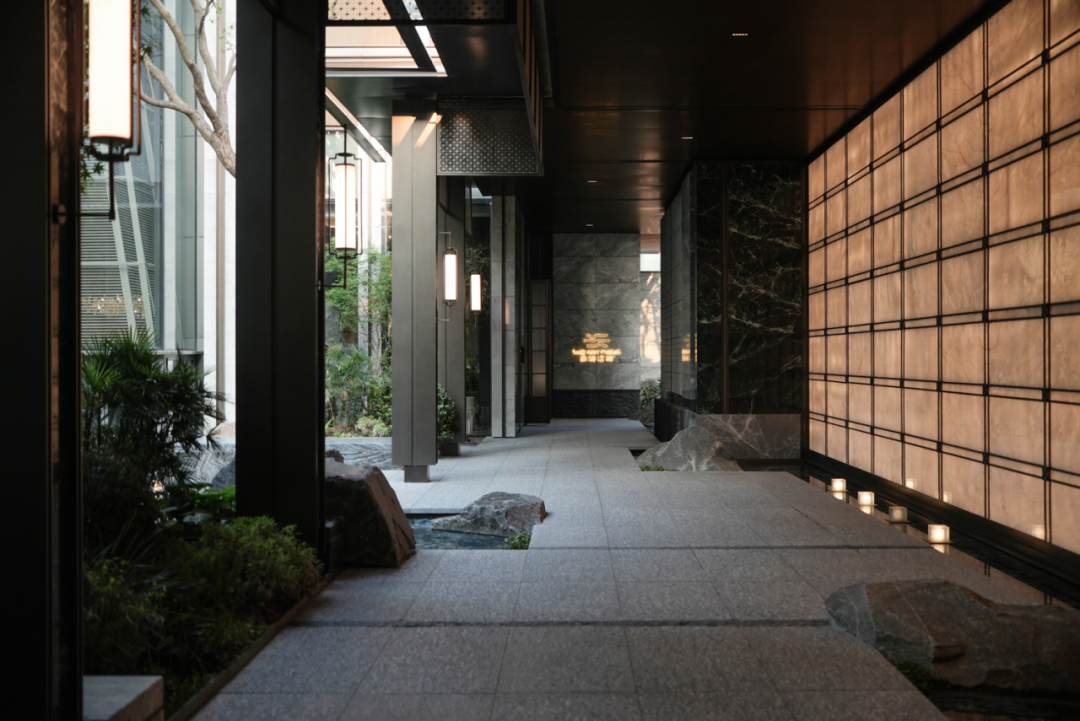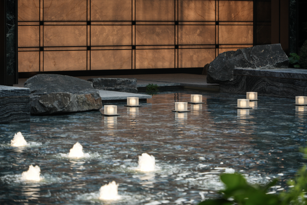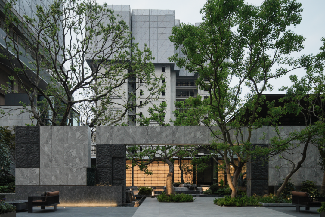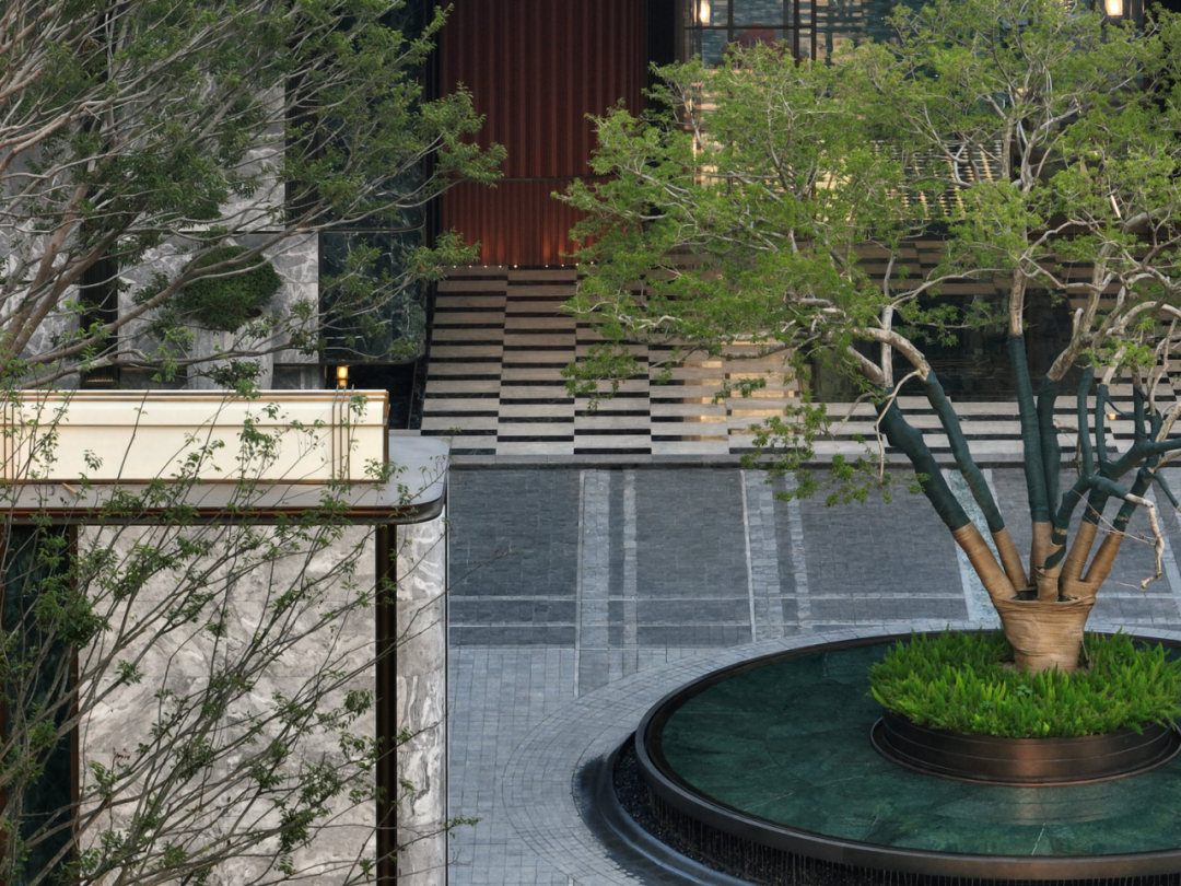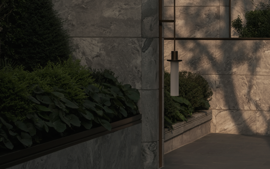 细腻而克制的肌理,像是精神世界的写意表达。方寸之间,精致的叠水空间从有界延展出无界,水流律动、立面延伸、树木生长,它们在动态的平衡中构筑了一幅精美的艺术风情画,又在流动的空间里,让归家的人忘却时间,放下一切喧嚣,在仪式和静谧中,体悟自然与生命的流动,感受此刻的奢雅与从容。 The delicate and restrained texture is like a freehand expression of the spiritual world. In every inch, the exquisite stacked water space extends from the bounded to the unbounded, with the rhythm of water flow, the extension of facades, and the growth of trees. They construct a beautiful artistic style painting in dynamic balance, and in the flowing space, make people returning home forget time, let go of all noise, and experience the flow of nature and life in ceremony and tranquility, feeling the luxury and calmness of this moment.