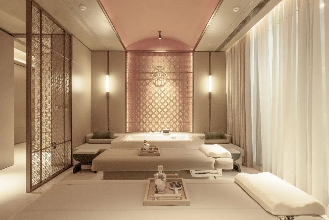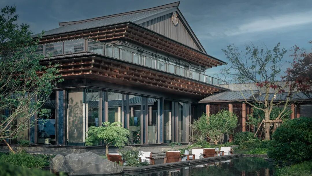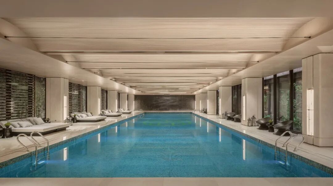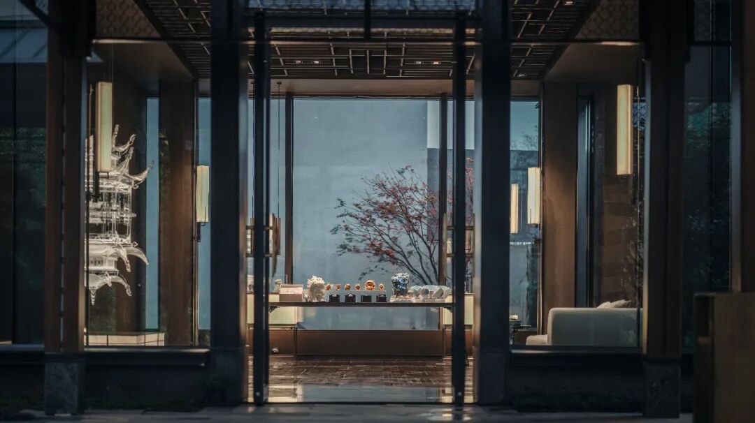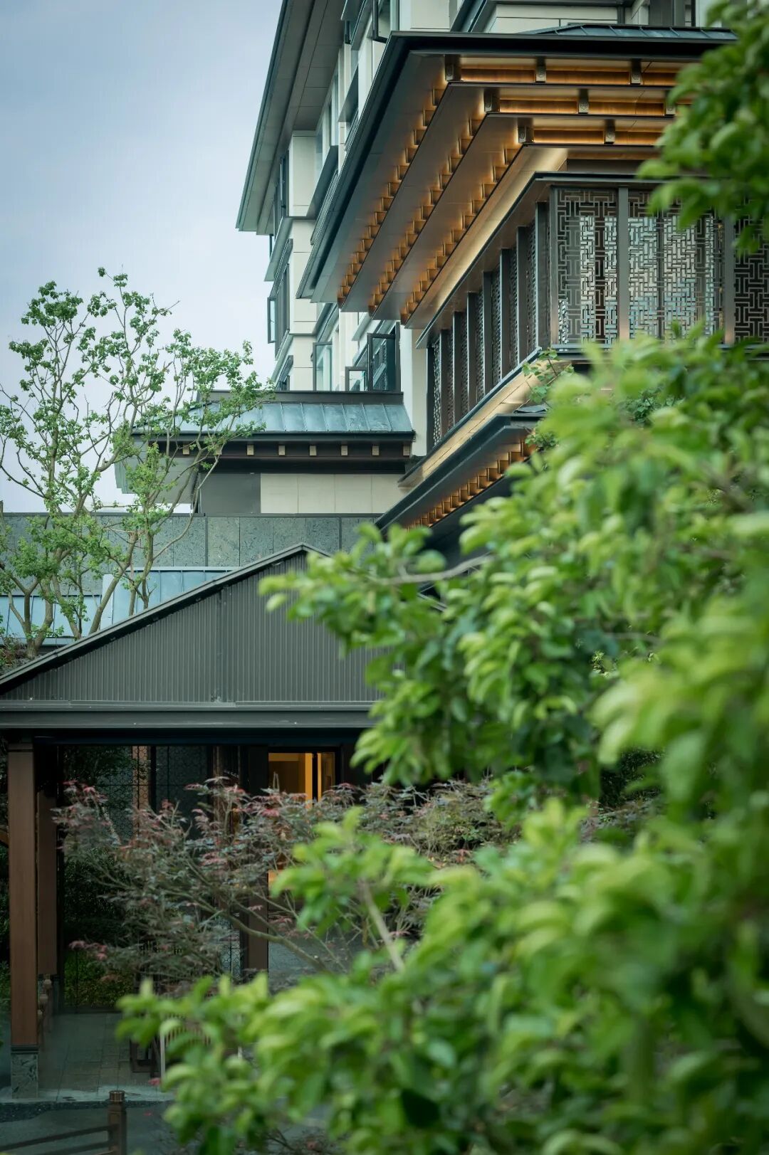 泳池区延续洽谈区主空间的廊柱设计,搭配天花板独特的拱顶取材自湖南大学标志性的拱门,以城市基因组成空间脉络,拱顶设计让灯光柔和地折射在空间中,泳池两侧运用绿植造景营造松弛自然的氛围空间,让宾客能够自在怡然的享受游泳的乐趣。私宴区域布置有游乐休闲区与品茶区,一动一静,充分满足全类型人群的要求。简洁的环形吊灯采用玉石与陶瓷的设计,辅以极简的艺术线条,在现代美学中融入传统的中式元素,艺术墙画强化了空间的质感。保利天瑞建筑风格严整开朗恢弘华美,舒展而不张扬,典雅却富有活力。以木构建筑之形象、明代园林之风韵为基础,取其“形”、“饰”之特色,将概念“骨为今筑。韵以古成”作为项目的出发点,以繁驭简,用现代的手法去表现出古典的韵味。建筑造型上提取传统建筑屋檐之间的形,采用歇山顶、斗拱、屋脊等传统元素,强调横向线条构图,以现代设计手法,转译东方建筑经典美学。色彩上取五行正色为主调,大面运用京元(中性灰)苍艾(深栗壳)茶色(深木色)等传统色彩,辅以薄墨(暖灰)缟羽(浅米白)贴金(黄铜),以珐蓝点睛,形成一幅山水隽逸古朴拙美的画卷。细部上通过不同层数的收口,隽永东方檐下的建筑美学,彰显门第尊崇;窗框勾勒并出挑形成轻盈的取景画框,点睛东方之韵;简化传统中式栏杆,保留中式韵味,大气又不失精致。示范区整体空间设计植根于长沙的书院文化,以园林造景的“起承转合”手法对室内功能进行串联布置,打造华美的中式礼序空间。重点空间天花及地面以保利天瑞的“瑞”字logo为原型,加入传统的中式窗花元素,以现代的材质复刻传统的建筑结构,在现代与古典的交融下,让中式风格迸发出别样的美丽,成为重要的空间品牌记忆。随处可见经典中式元素的当代转译,垂花、长窗、雀替、门环、壁灯、挂落、鸱吻、悬鱼,处处“耑”字纹吉刻,传递着东方的人文厚韵和瑞意盈庭的美好祝愿。
