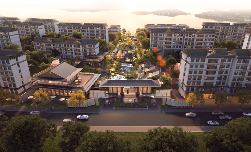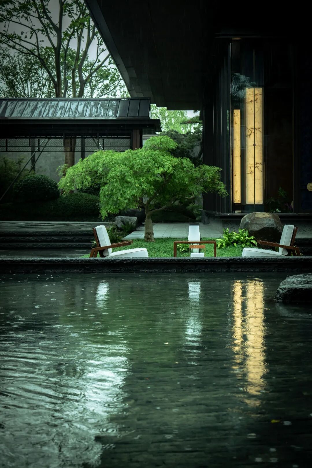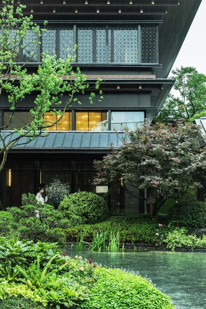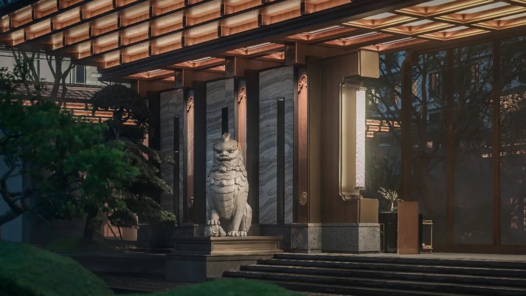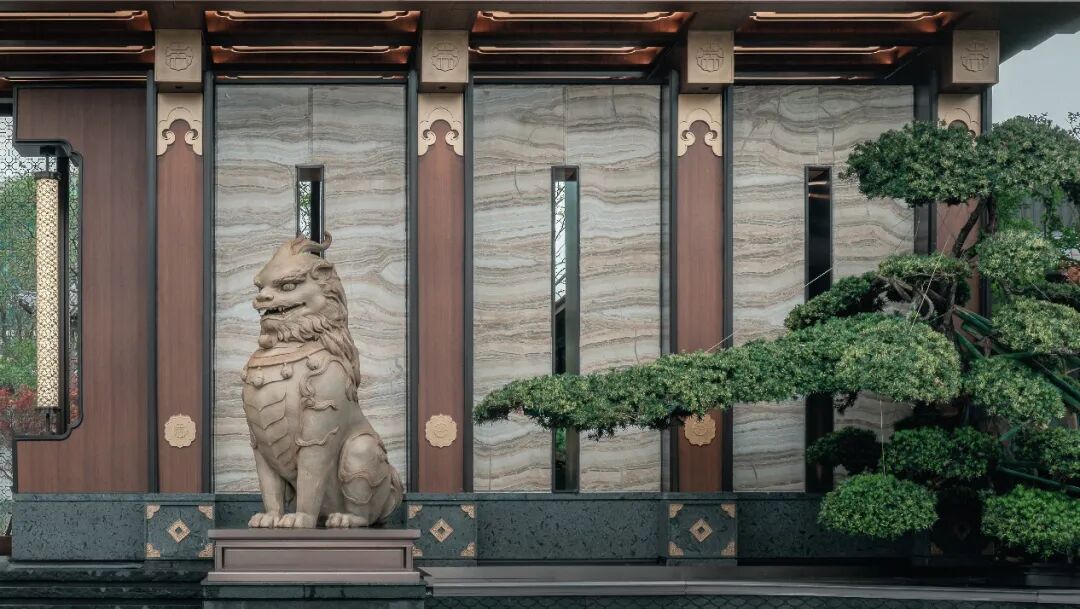 洋湖国家湿地公园内的瑰宝,“公园里”的居住梦想。景外有景,园中有园。山水庭院,自然为邻,东方人居。将府门、水院、会馆等元素有序排列,层层递进,步步尊崇。现代建筑语境下,对传统中国建筑艺术进行重新诠释和创新。不仅仅是对古代建筑形式的再现,更是对古代建筑精神和哲学的深刻理解与现代设计理念的融合。"四巷九园"的院落设计,居住空间与自然无界相融的居住环境。园中有巷、巷中有院、巷院合一。取园林之精髓,经典之布局,网师之气韵,在山与湖之间构建天瑞之园。府门、水院、社区大堂、文昭会馆、潇湘会馆、湖心会馆等空间依次展开,提供茶室、恒温泳池、健身房、瑜伽室至SPA汗蒸、临水私宴等高端休闲服务,满足对品质生活的全部想象。主入口以“七开间”明堂制式为原型的恢弘府门,结合迎宾景石、龙鳞盏水景, 流涓龙鳞、泰山松和瑞兽“甪端” (lù duān),打造礼仪式归家落客界面。内嵌至洋房主体中的社区大堂成为进出社区内部的主入口之一,从竖向来看将前场庭院与社区内部天然隔离。进入社区大堂内部,挑高9米,打造饱含中式韵味的酒店式归家体验,通过提升电梯到小区主景区。以艺术家的祥瑞“神兽”系列作为主题展品,意在祝愿长沙保利与客户们家宅平安,生活顺遂。