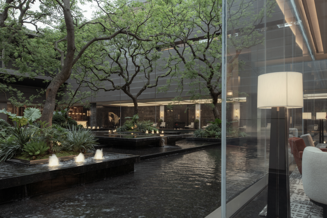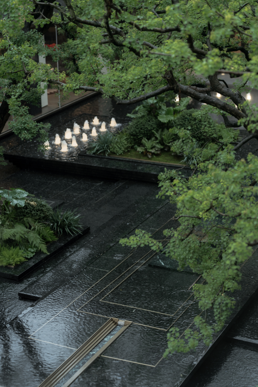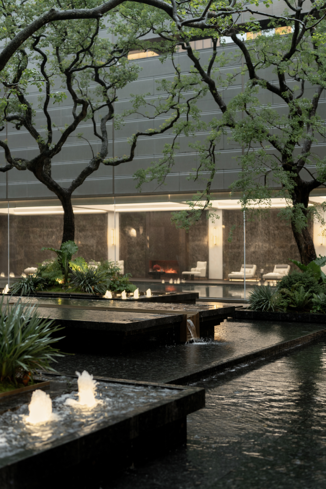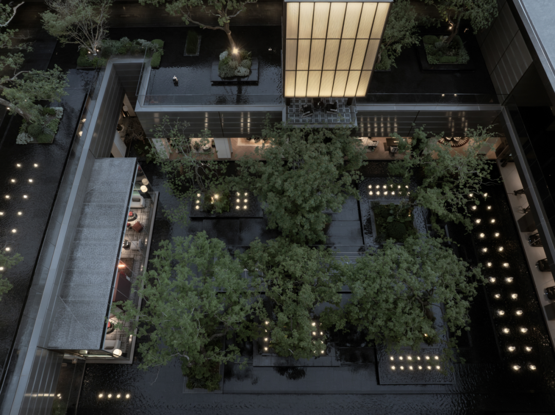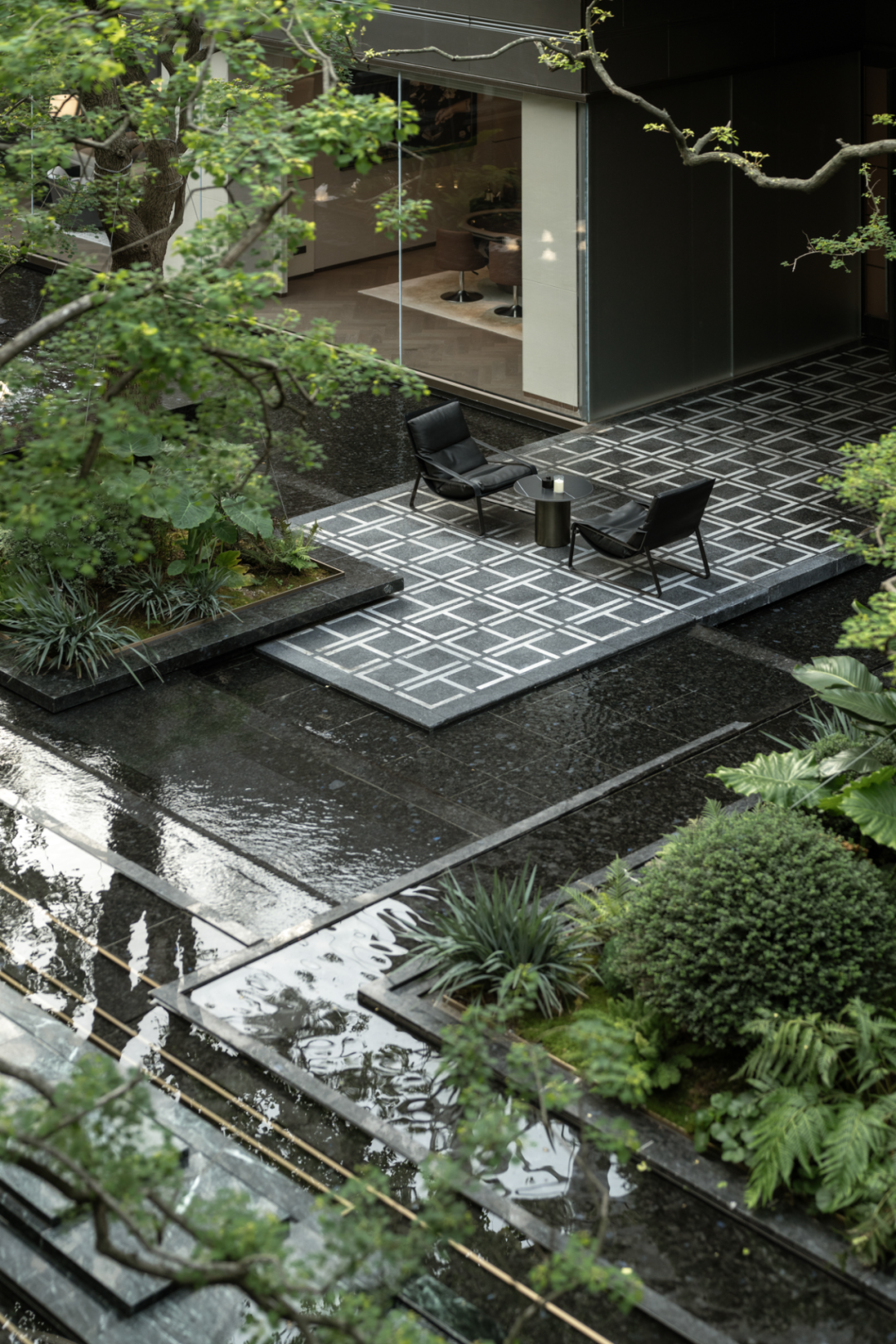 洄游水院 泗水归堂,汇聚瑰宝的洄游空间。下沉会所庭院空间突破了平面和室内外的局限,通过室内外和垂直上的空间联动进行统一的动线规划造景,营造出不同视角高端的空间体验感,为室内空间增添了层次与深度,形成自带滤镜的高级感,也是集艺术美学与前沿生活的高定体验。