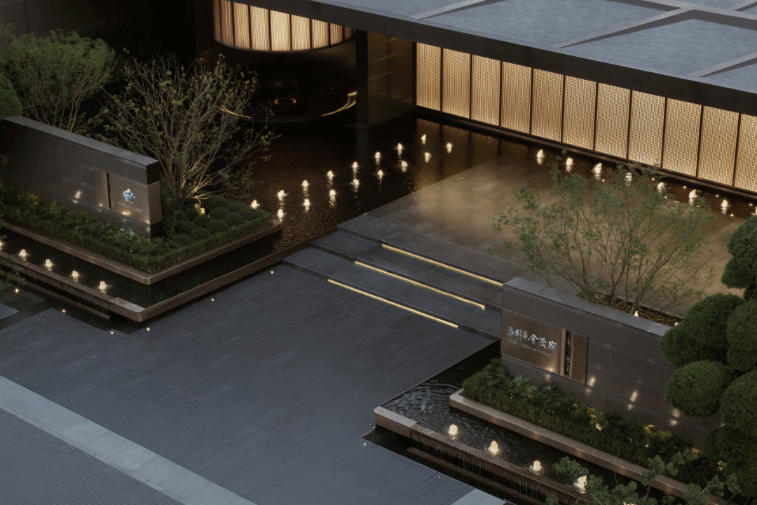 高墙阔院,是中国人骨子里的情怀,由约5米高墙围合起来的落客车马院,重现古时王府高墙大院的既视感,于外隔离城市喧嚣,于内繁华深处亦桃源。一处宽达约43米的门头,淋漓尽致的显现着府门威仪,入口处两棵约150年树龄罗汉松,跨越千里全冠移植而来,中间移植的是蕴含...