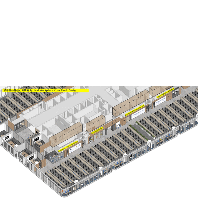 標準辦公層在核心筒周邊還置入了不同體量的「BOX」,將辦公的不同功能空間進行有效組合,讓員工的辦公動線更便捷。