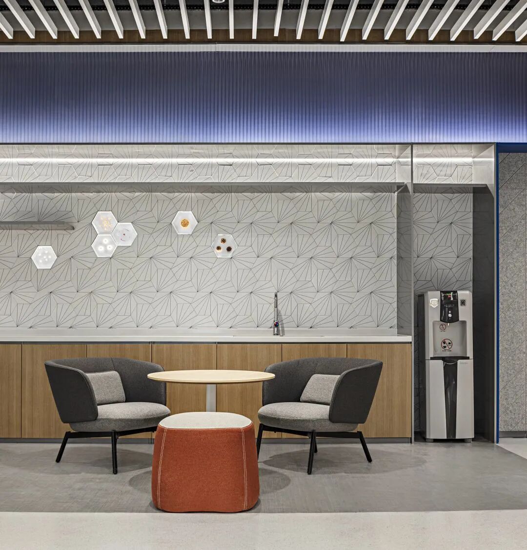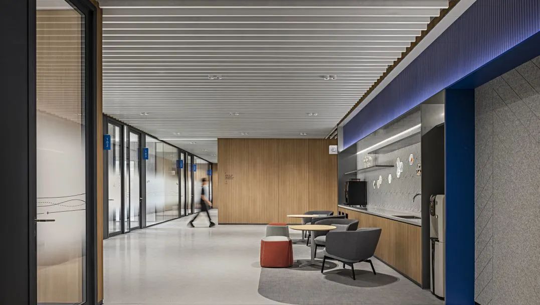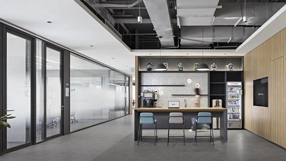 ·標準層辦公空間. ·茶水間承載茶歇咖啡、小組分享的多場景使用,牆面設計融入種子牆元素,延續情感共鳴.