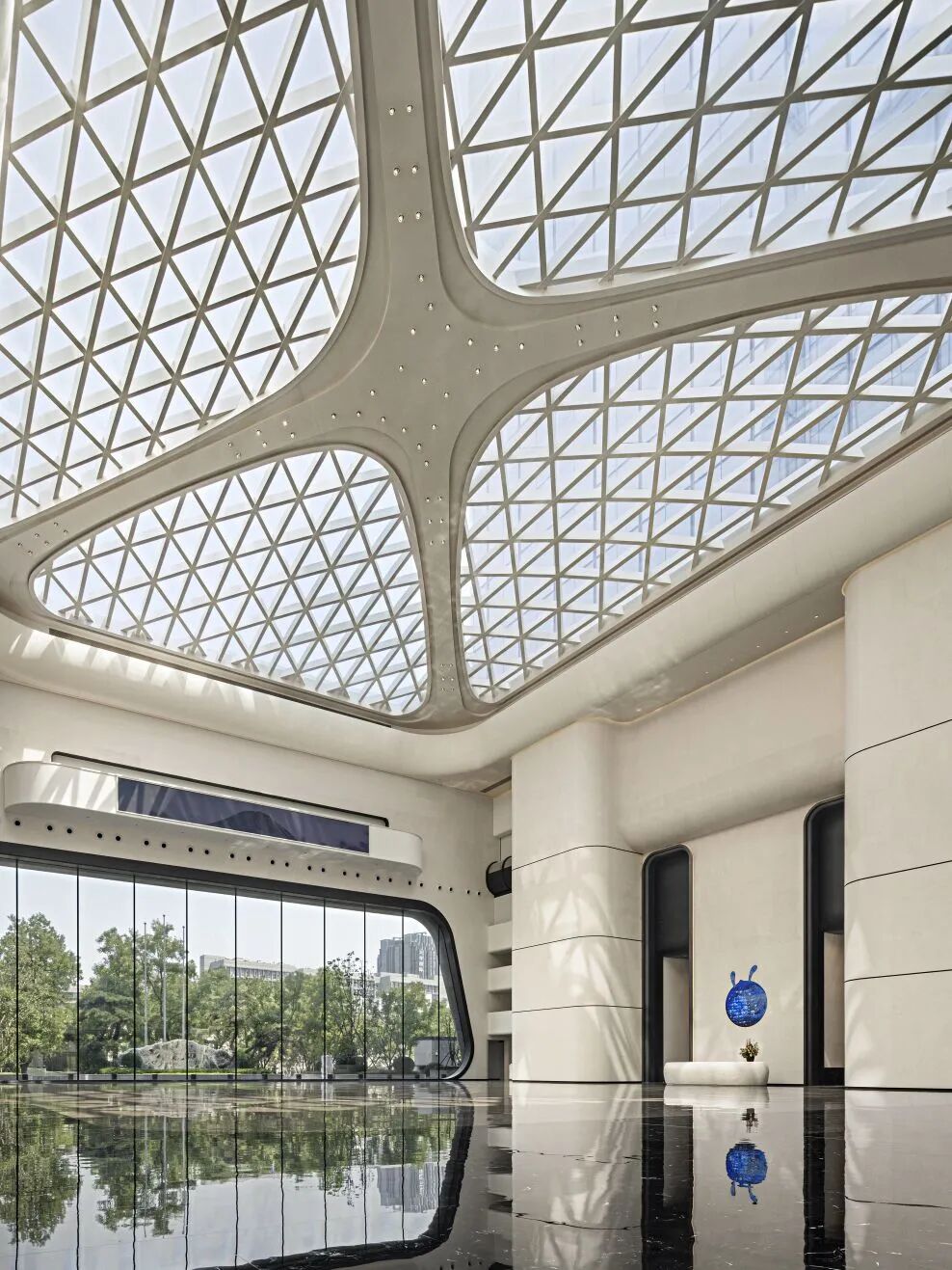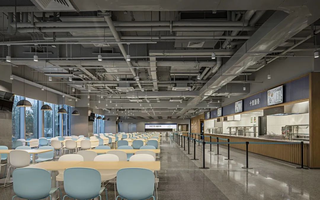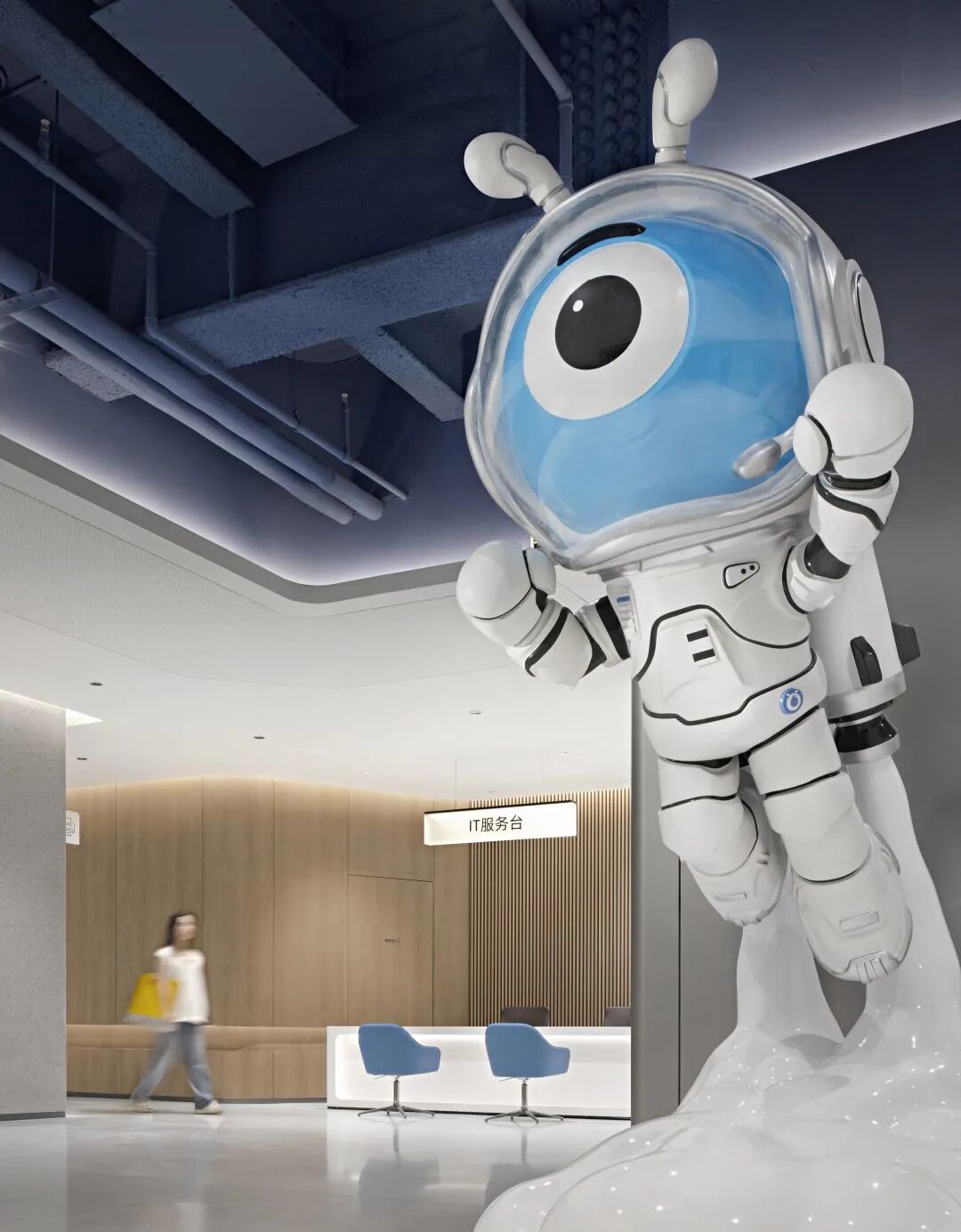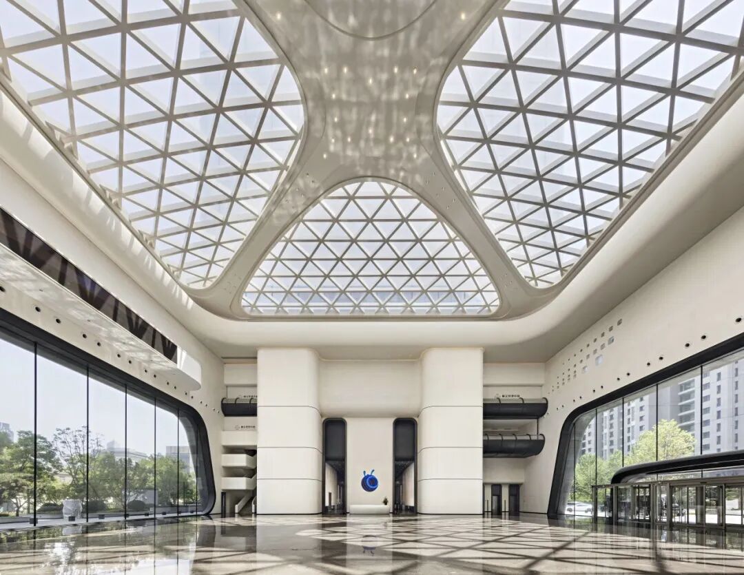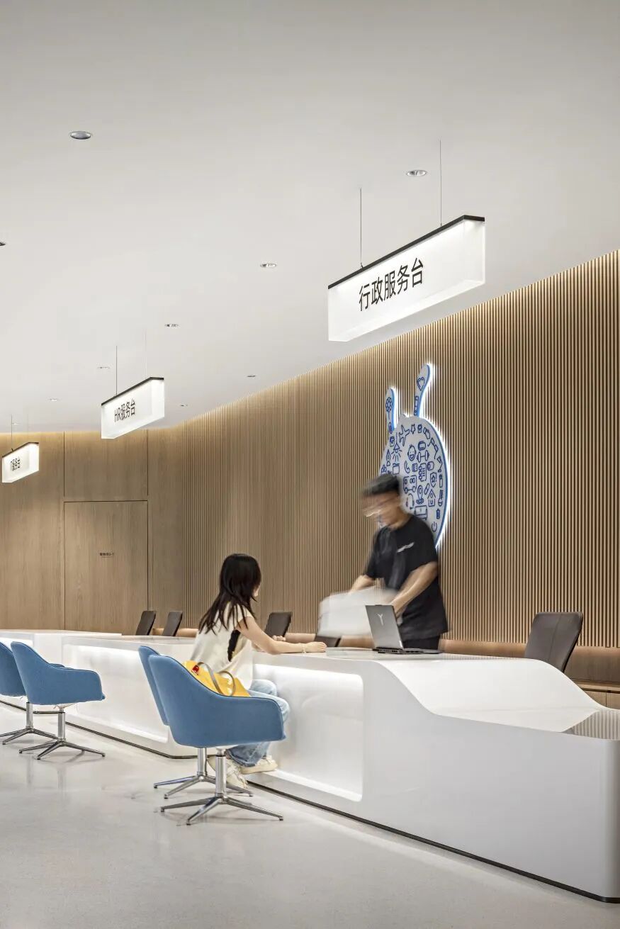 ·頂部空間採用藍色光影提升了空間的科技感與活力,形成了視覺焦點.