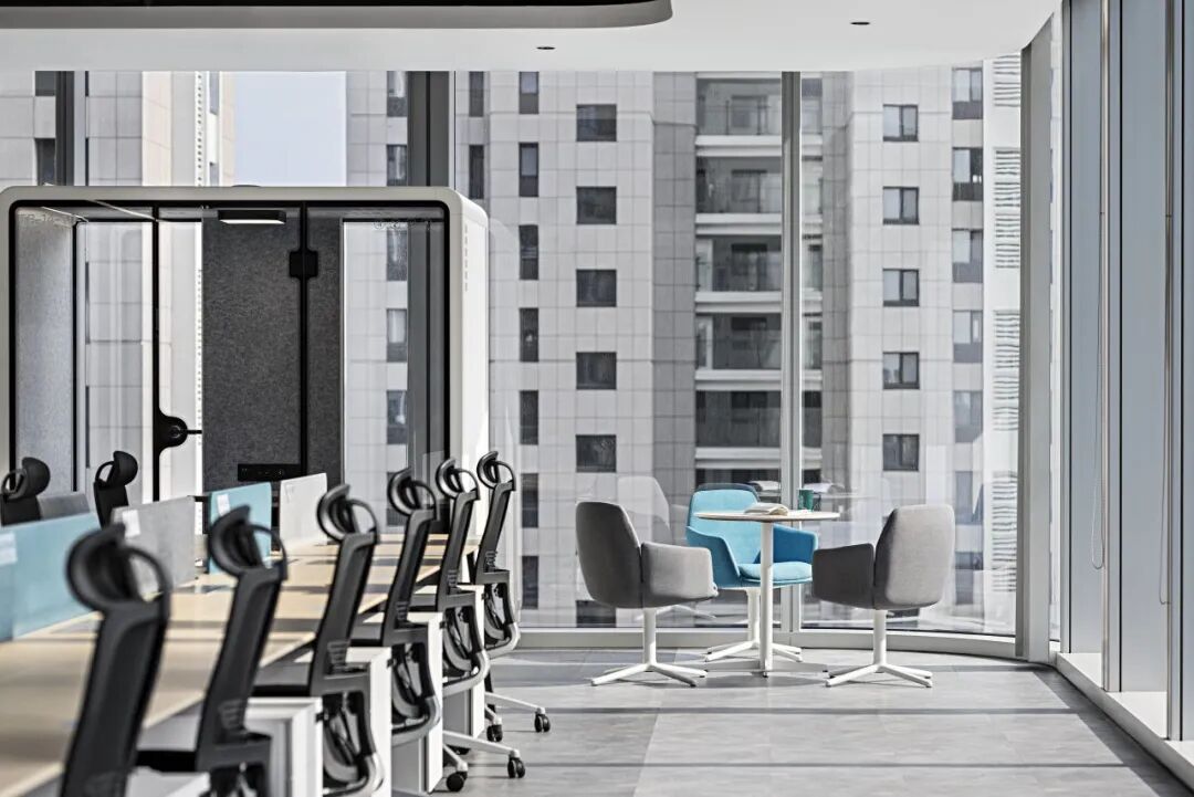 ·南側幕墻旁的分組討論區享受自然采光,增強員工放松感受.