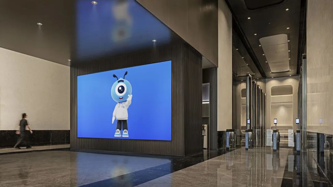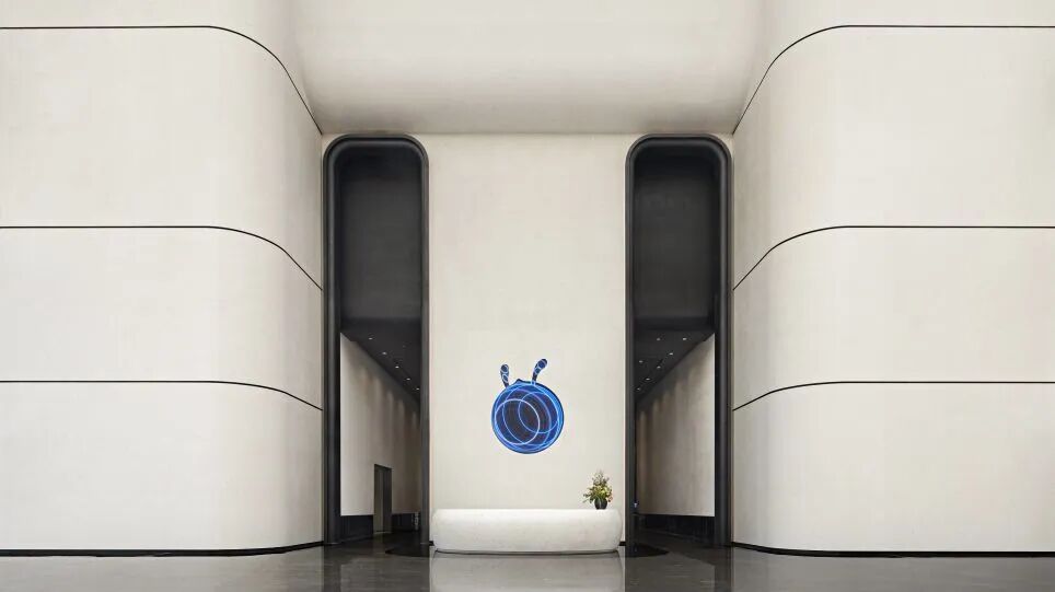 在內部空間設計中,設計團隊精心選擇藍色作為主題亮點色彩,這一獨特的色調不僅豐富了空間的層次感,而且象征著空間設計對健康、活力以及不斷追求卓越的核心價值觀,並在有限的空間內,以設計帶動空間價值的實現與促進理想場所的誕生。 ·首層電梯廳及訪客中心入口