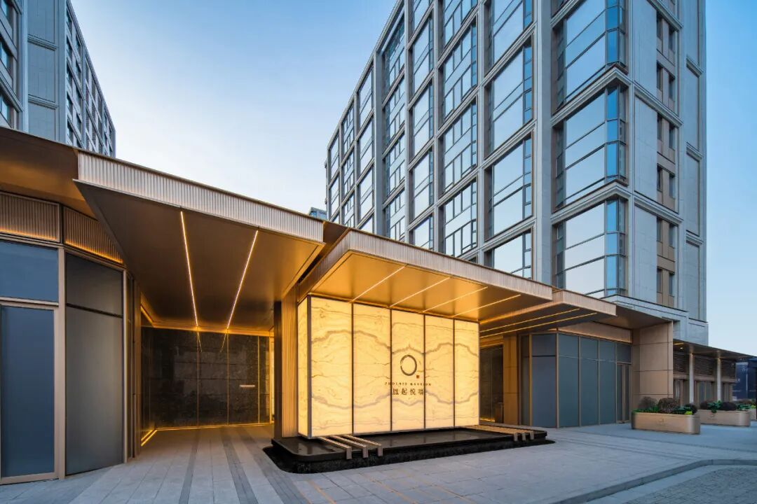 退后城市道路,形成度假酒店式落客区,又利用半隐照壁和入口与市政道路保持一定的距离,充分诠释了什么叫做“大隐隐于市”。