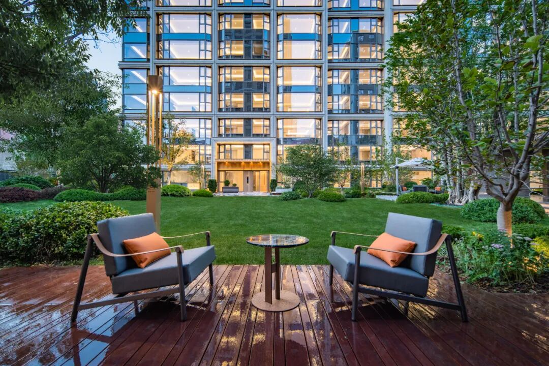 1#楼北侧的岩石公园也给我留下了深刻印象,以英式皇家庄园景观造景为灵感,融合中式叠山植木的意趣,感受植物在石缝中的向上生长。