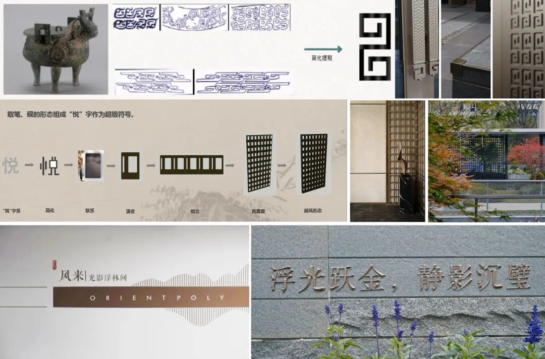 建筑、园林、精装三大专业设计深度契合,从空间场景到细部造型,“一套设计理念+一套纹理元素+一套材料样板”贯穿始终,一气呵成。宋式美学及徽派文化构成方案设计两大基调,地域文化衍生“砚台纹”“回龙纹”多重演绎、“金、石、水、木”材质构成东方宁静清冽,醇厚馥郁的浓郁色彩。