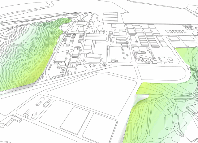 设计的主要思路是在两座山之间建立一个结合体,建立连接起两座山的绿廊。塔楼分成两个体块,以垂直绿化贯穿其中。被拉开的中庭享有充分的空气流通,同时有利于内部使用者彼此间交流,以及收获良好的外部视野。“生态绿色办公”是设计中的一大亮点,我们在大厦两端设计了通体的半室外空中花园,出挑的阳台从楼顶延伸至地面,引入绿植后将形成“垂直森林”的震撼视觉效果。